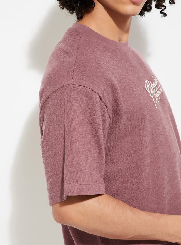 An ideal addition to your casual wardrobe, this embroidered T-shirt features a crew neck, short sleeves, and a straight hem, offering a relaxed look. The oversized profile ensures comfortable, roomy wear.