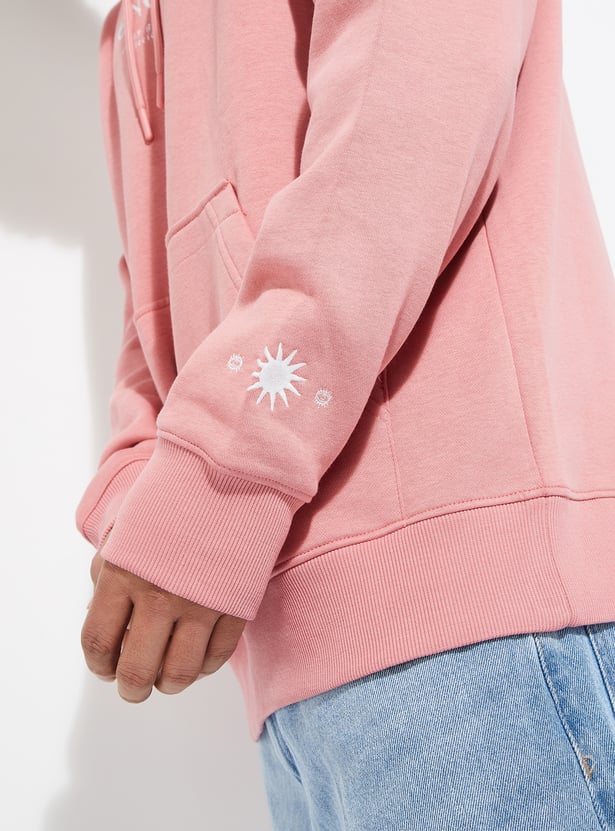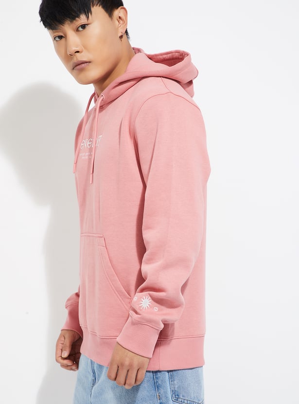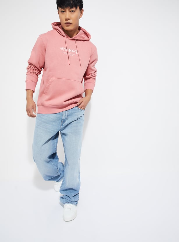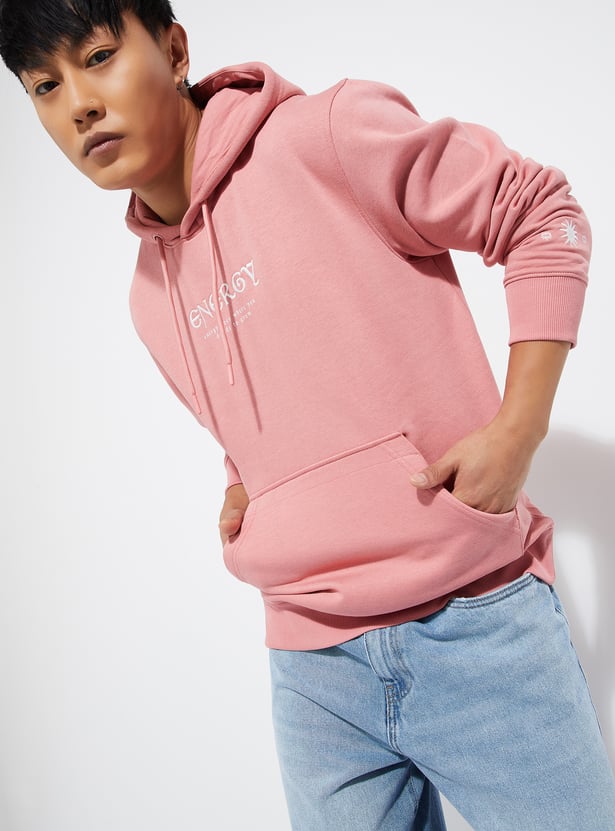 Stay warm and stylish in this printed hooded sweatshirt, designed with full sleeves, a kangaroo pocket, and a ribbed hem for a snug fit.