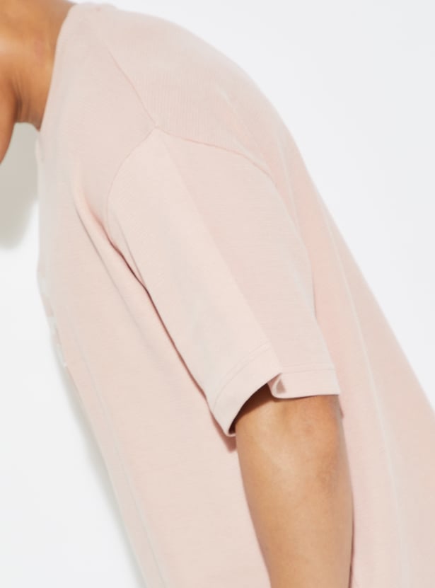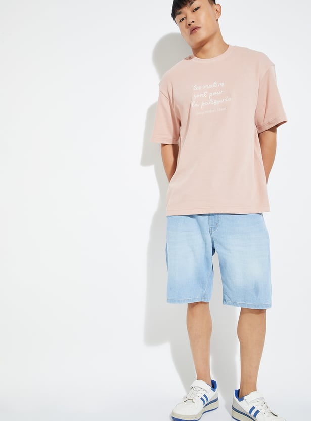 This printed oversized T-shirt is all about relaxed style, featuring a classic crew neck and half sleeves for a comfy fit. The bold print adds a playful touch, making it perfect for casual days or layering for a laid-back, effortlessly cool look.
