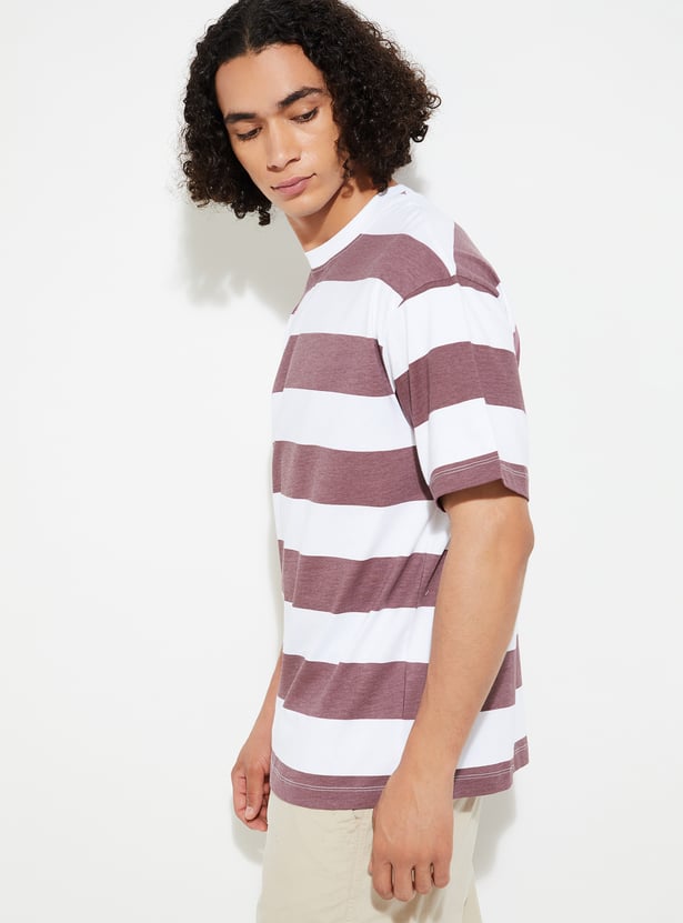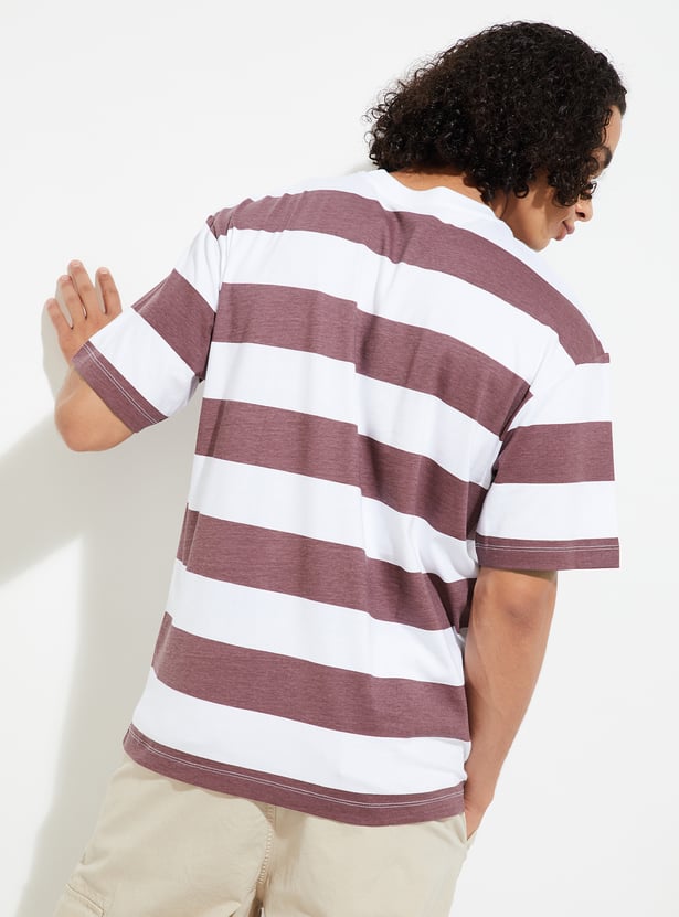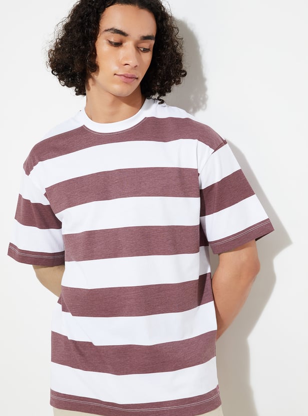 Upgrade your urban wardrobe with this striped T-shirt. With a classic crew neck, short sleeves, and an oversized fit, it brings a touch of urban edge to your casual style.