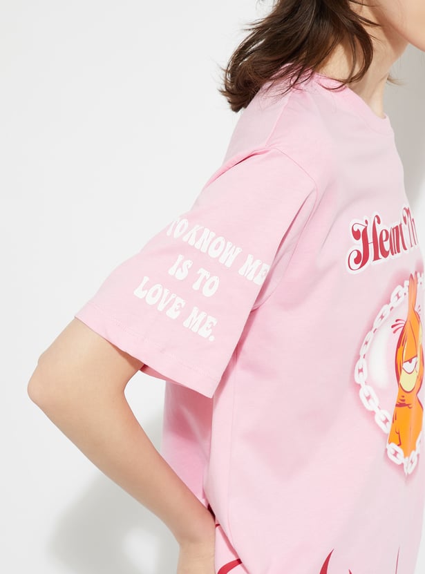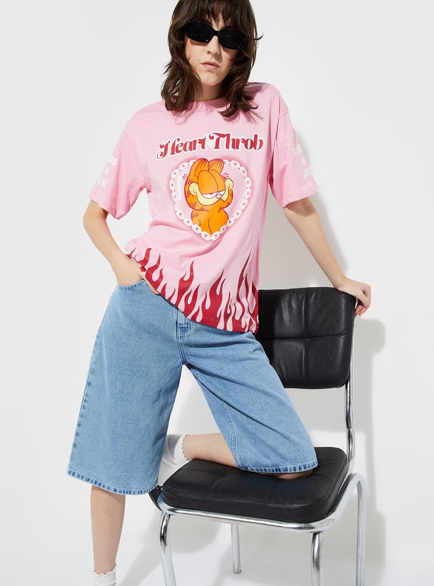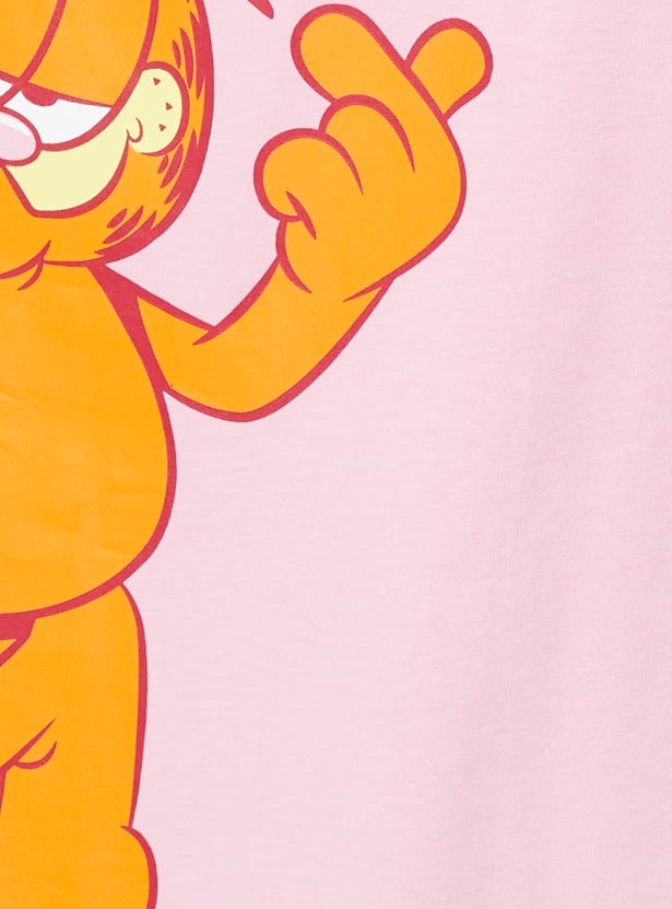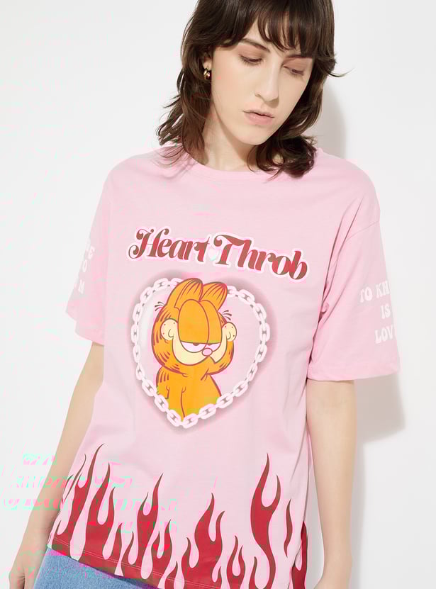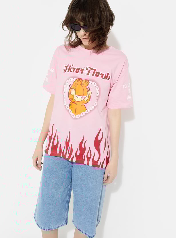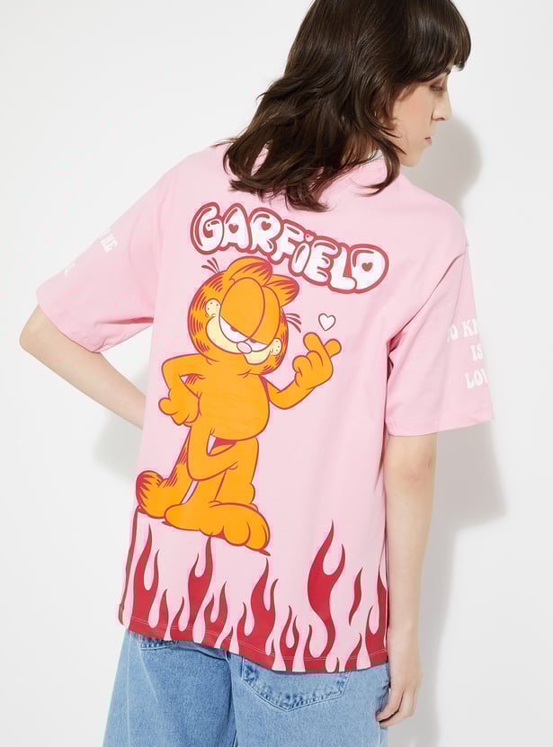 Show off your fandom in style with this Garfield oversized fit T-shirt. Designed with a classic round neck and half sleeves, it offers a relaxed silhouette that blends comfort with an effortlessly cool vibe.
