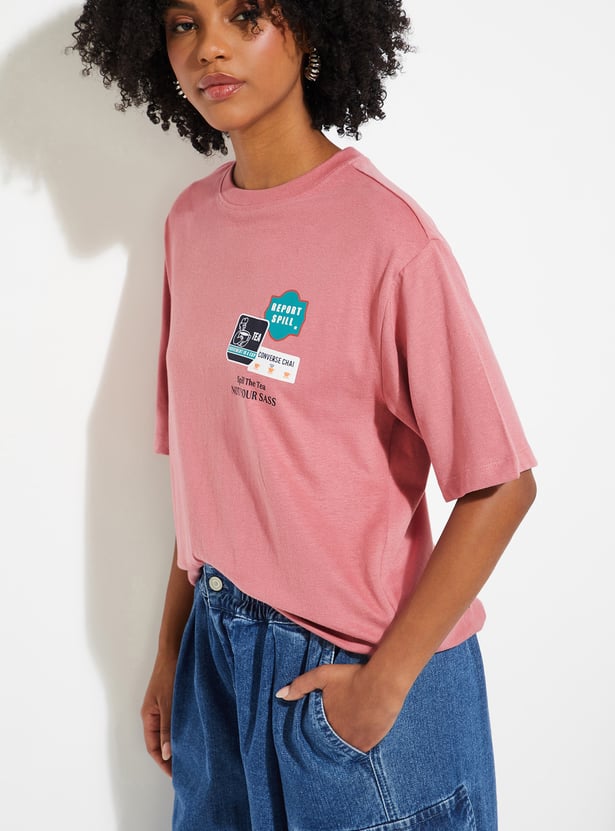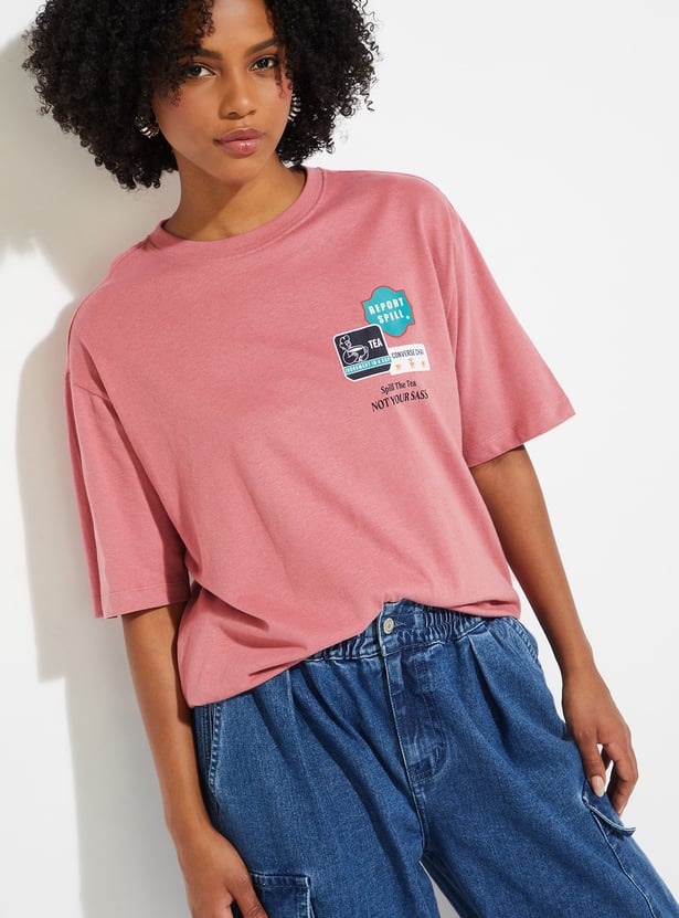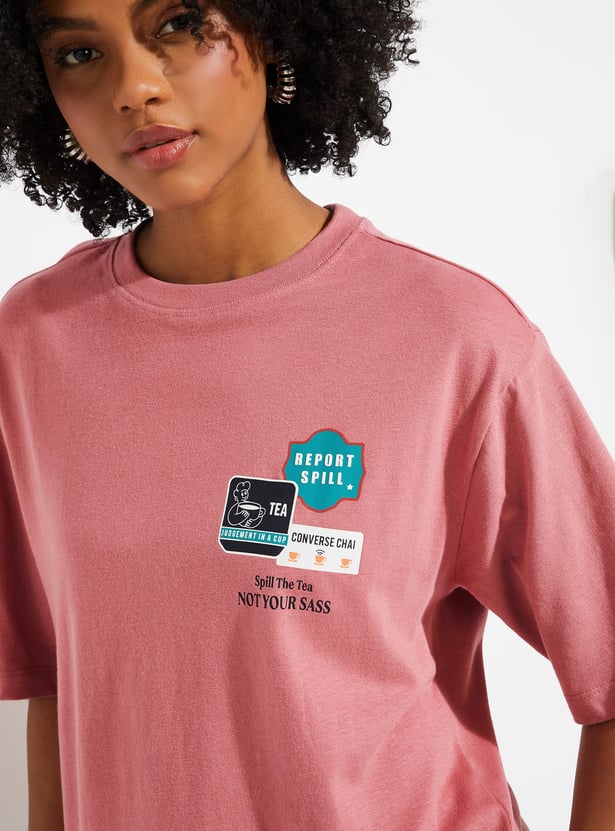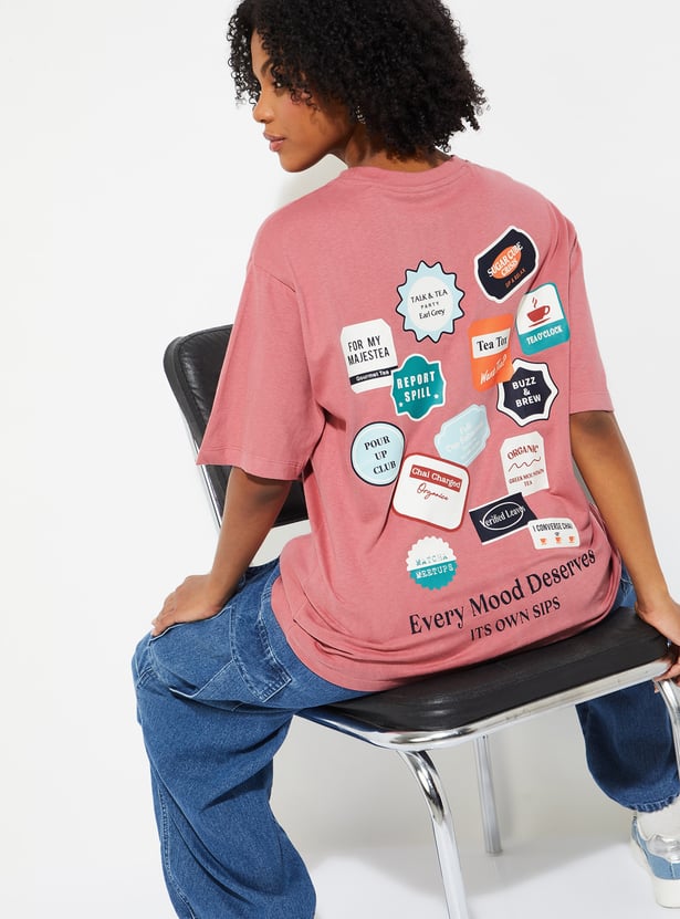 Keep it cool and casual with this printed oversized t-shirt. Featuring a round neck and half sleeves, it’s designed for everyday comfort with a laid-back silhouette. The back print adds a touch of personality, making it a versatile piece for lounging, outings, or layering.