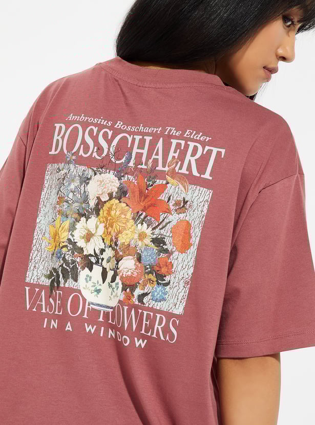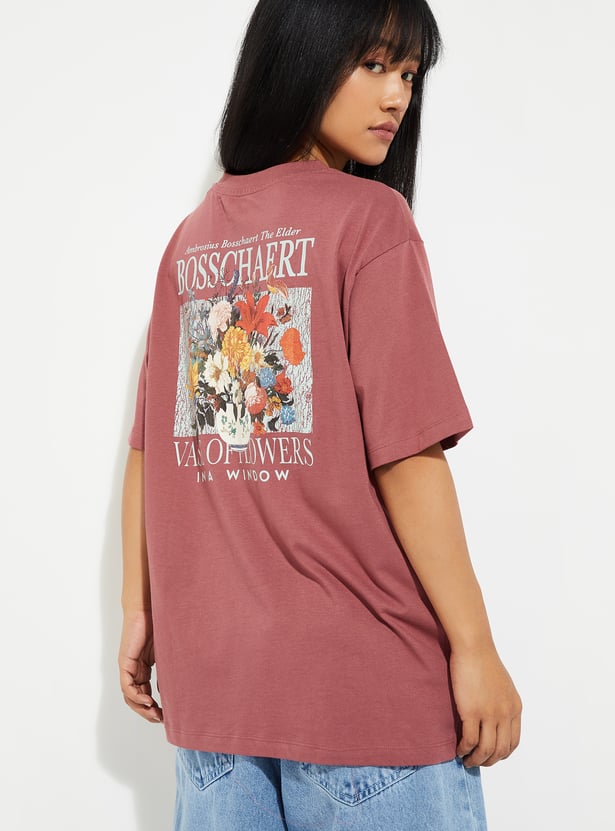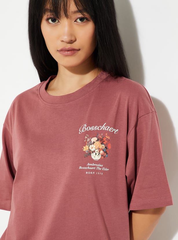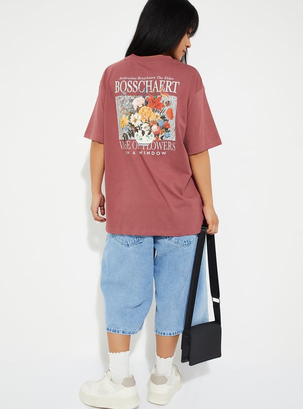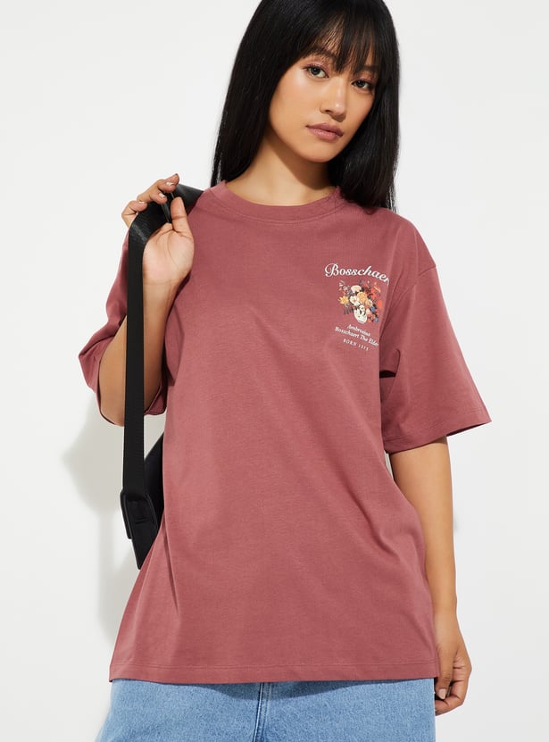 Stay effortlessly cool in this printed oversized fit t-shirt, featuring a round neck and half sleeves. Designed for easy comfort and everyday style, it adds a touch of personality to your casual wardrobe.