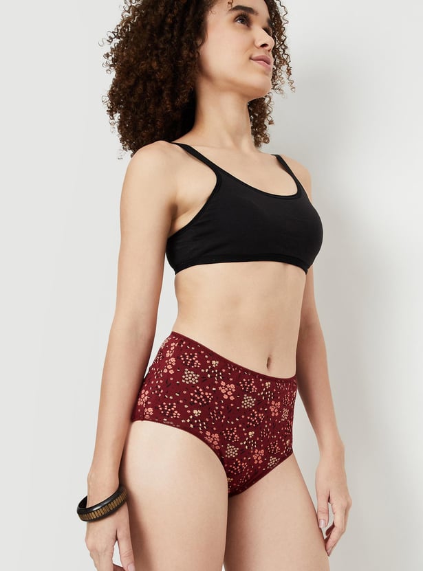 This pair of full brief panties has a comfortable elastic waistband, and a below-the-waistline fit, and comes with 2 pairs of printed panties and 1 pair of solid panties.