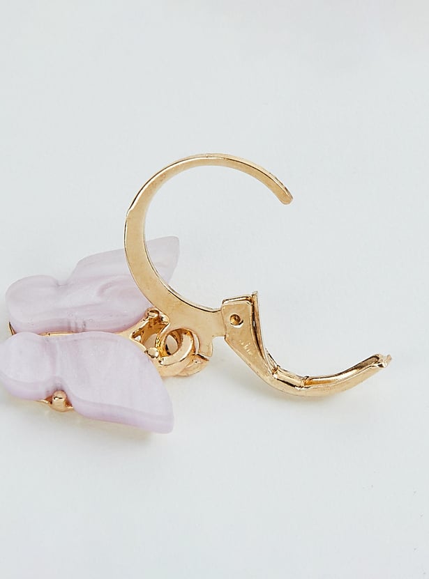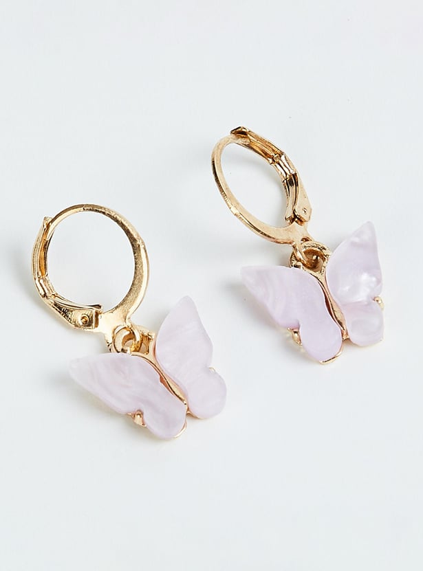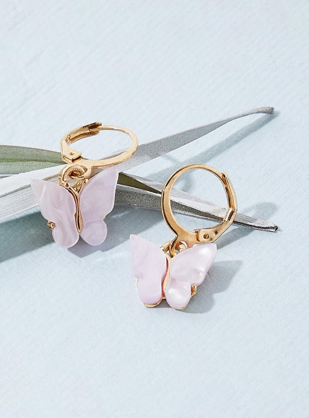 Make a dainty statement with this pair of earrings. It features hinged hoops for a secure fit and butterfly drops that lend an elegant finish.