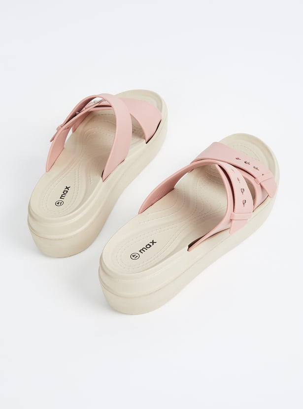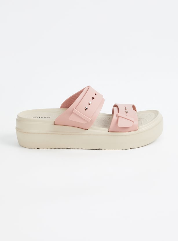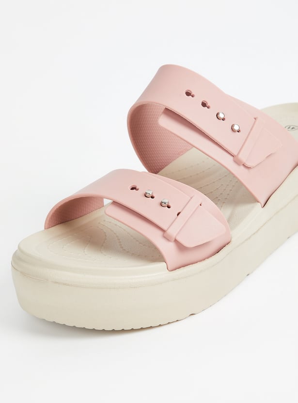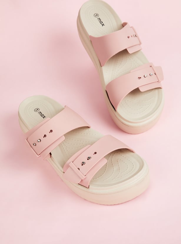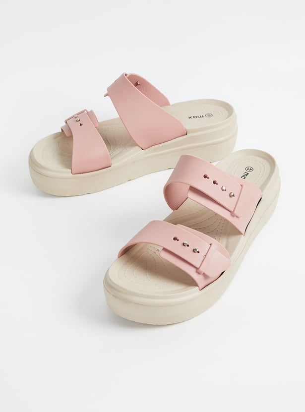 Step into effortless style with these solid double-strap sandals, designed for everyday comfort. Featuring buckle detailing for a secure fit, they offer a chic lift for versatile wear.