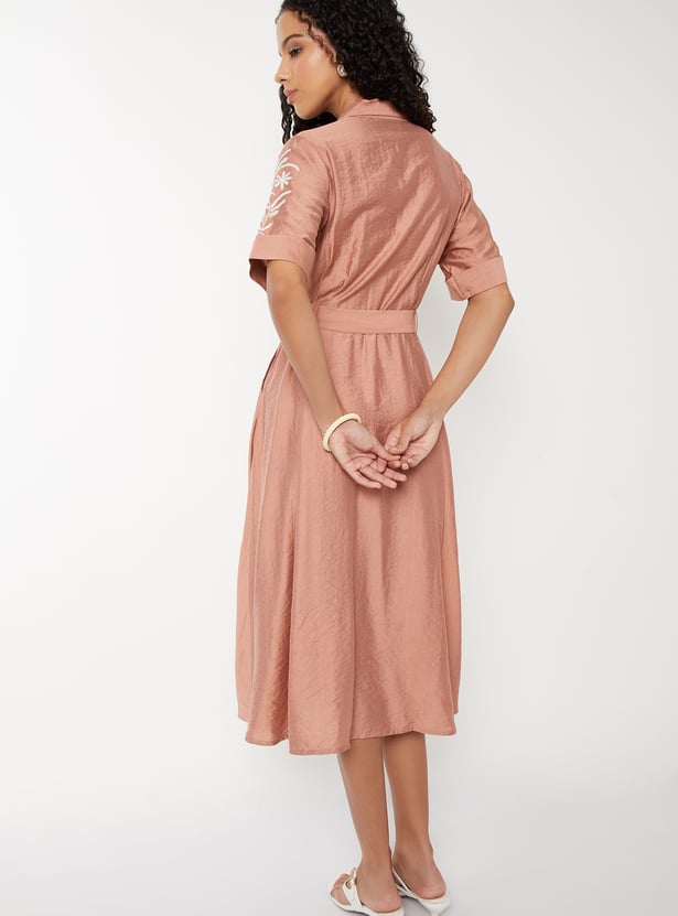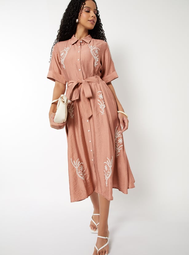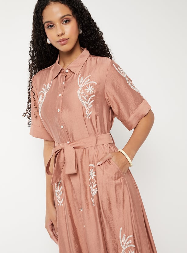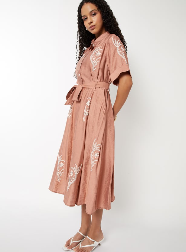Women Embroidered A-line Shirt Dress