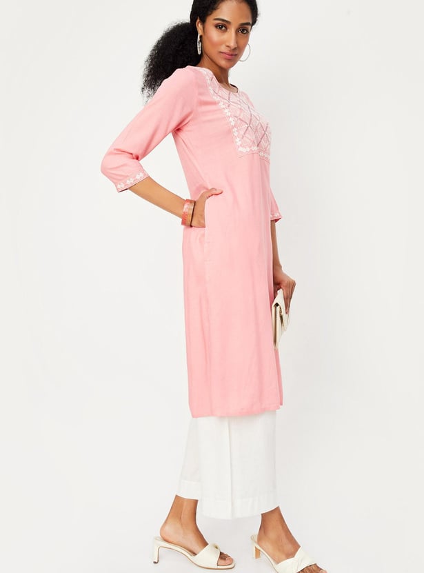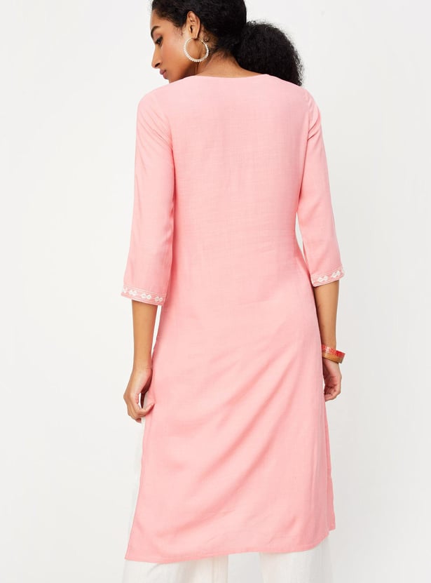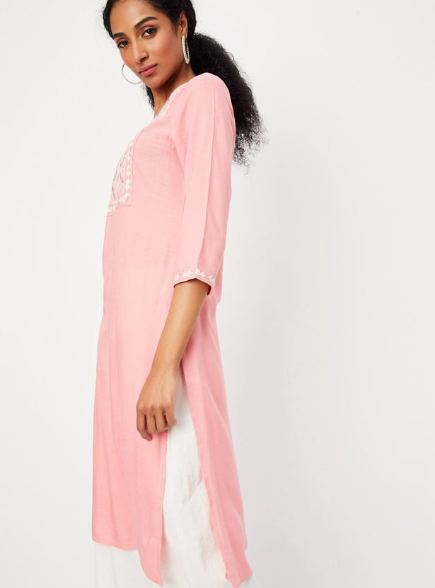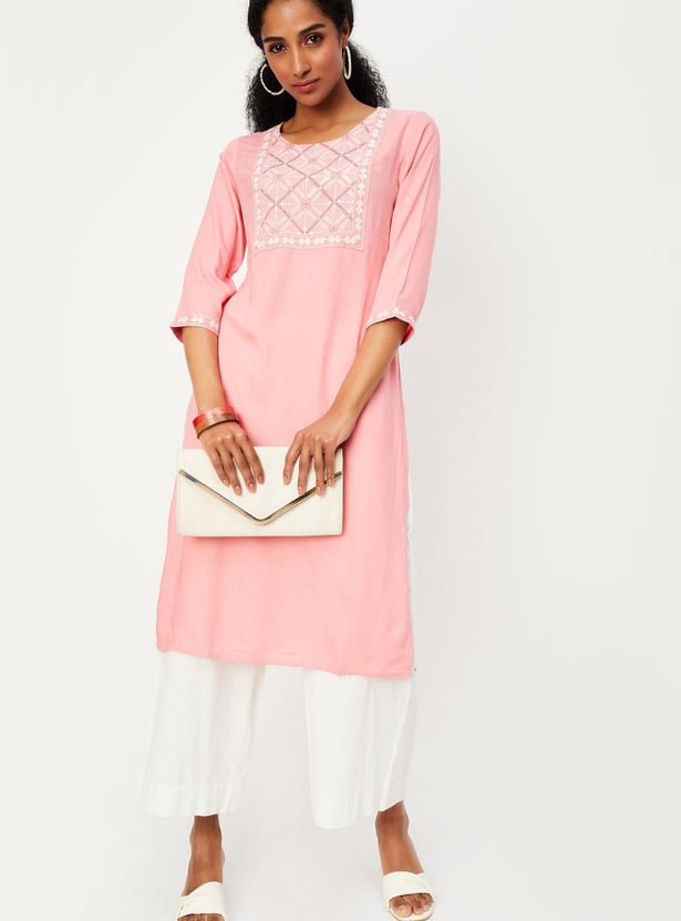 Women Embroidered Straight Kurta