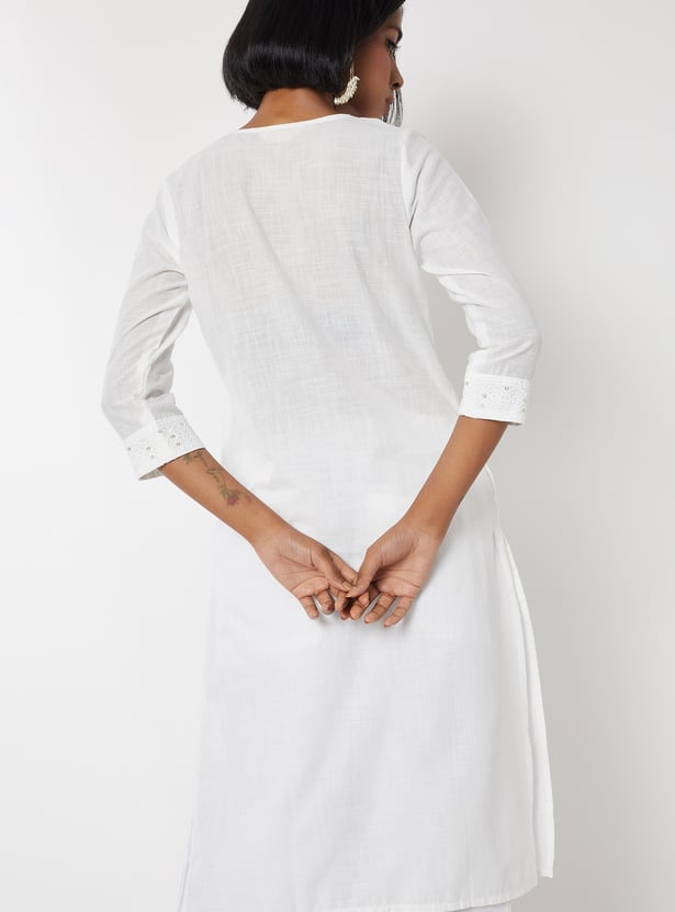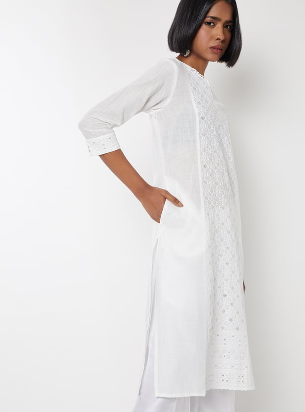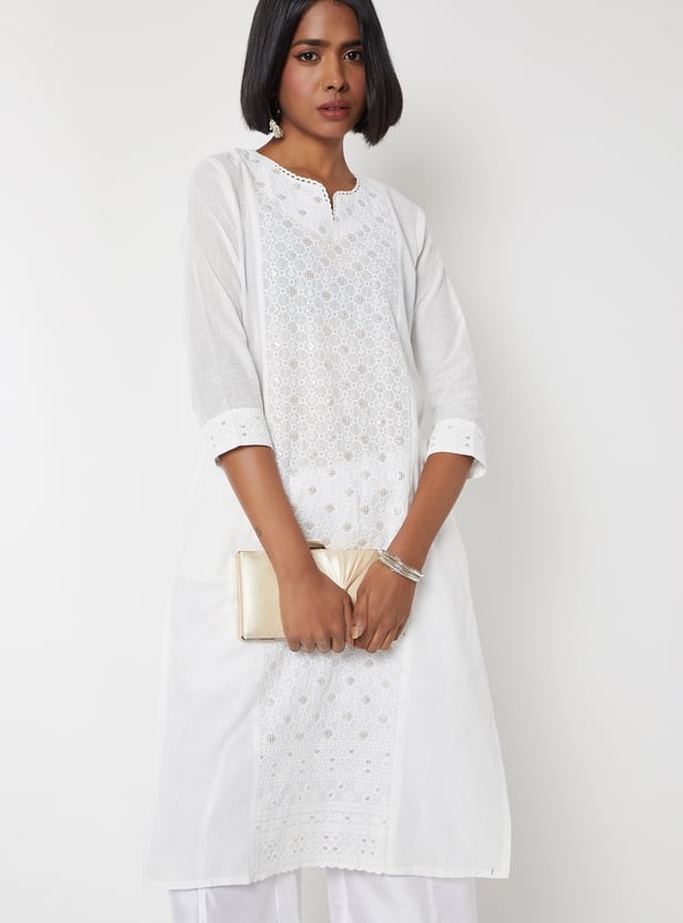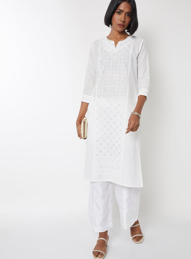 Women Embroidered Straight Kurta