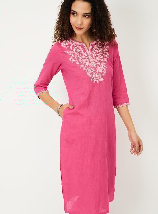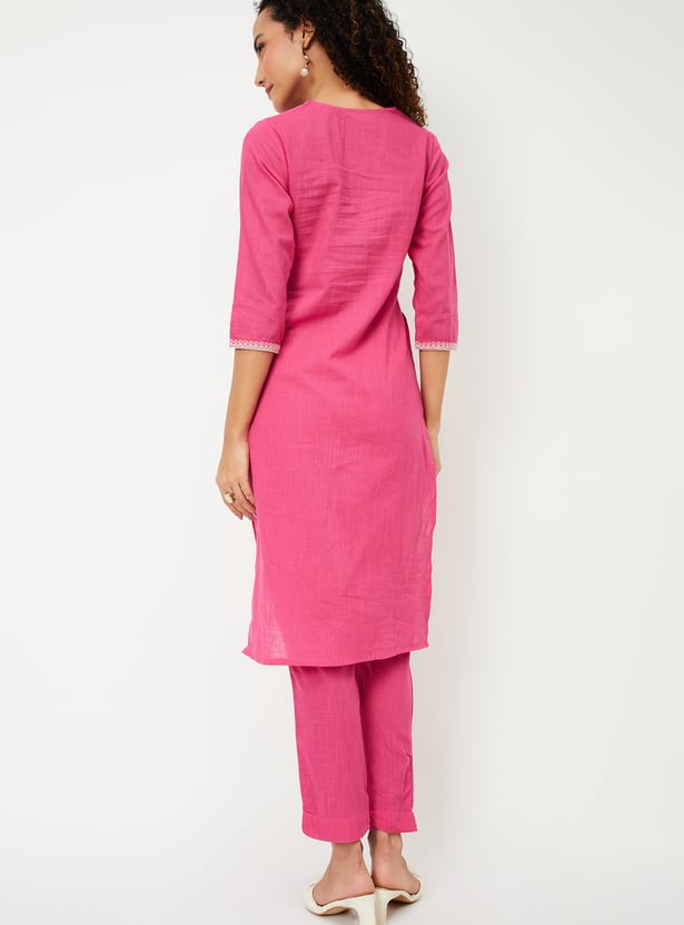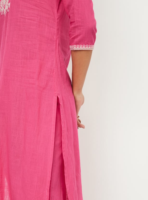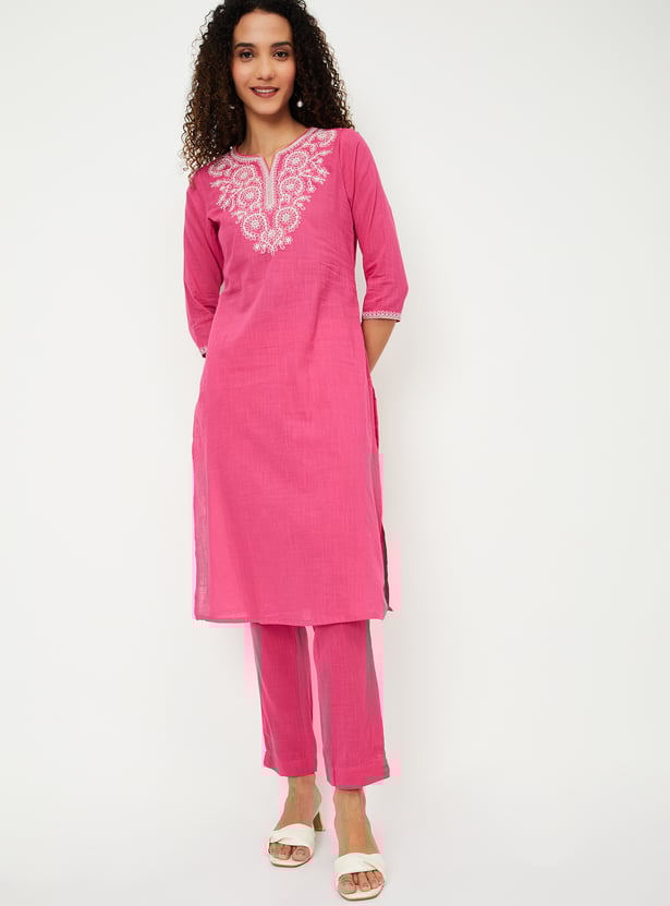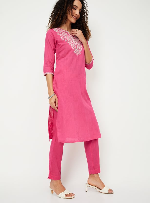 Women Embroidered Straight Kurta Set