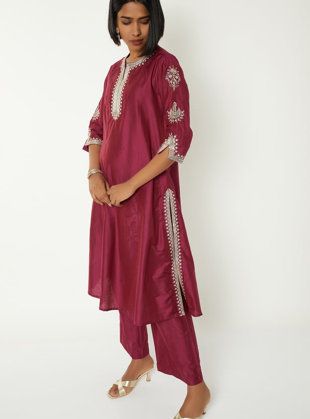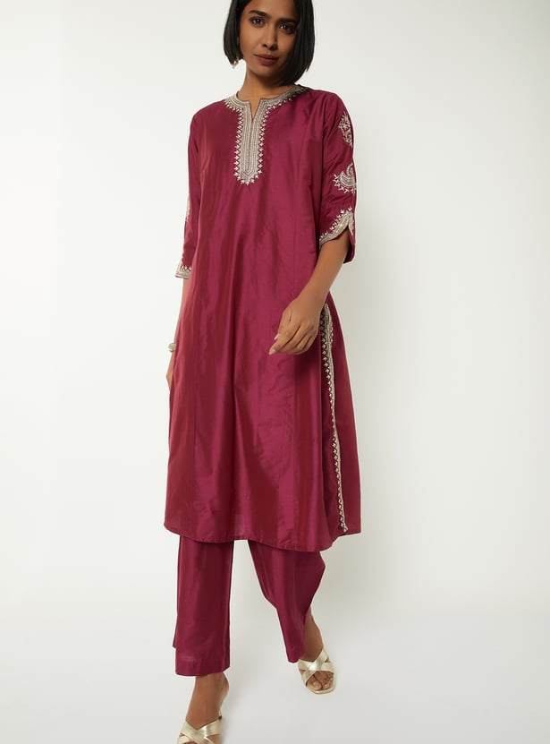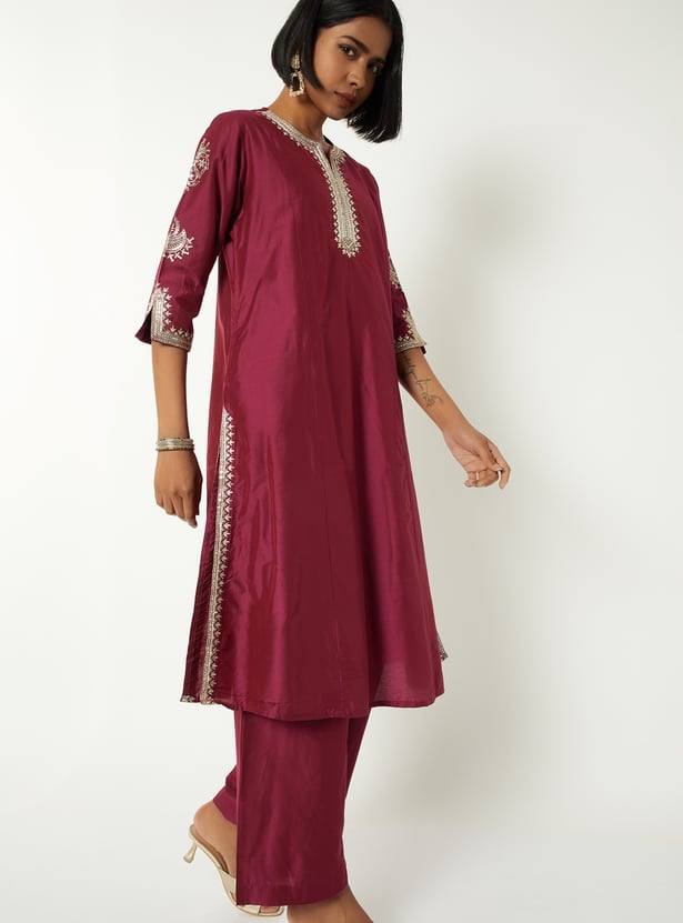 Women Embroidered Straight Kurta Set