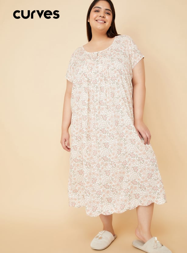 Embrace comfort and elegance with this floral print night gown. Featuring a round neck with button closure, half sleeves, and a flattering knee-length design, it’s perfect for a peaceful night’s sleep or relaxing at home. Model Size :