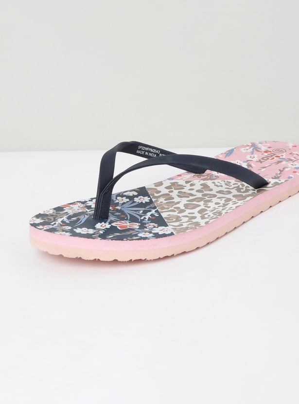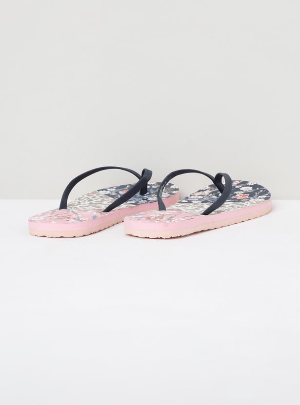 Breezy and easy, this pair of flip flops is detailed with floral prints and comes with a comfortable footbed.