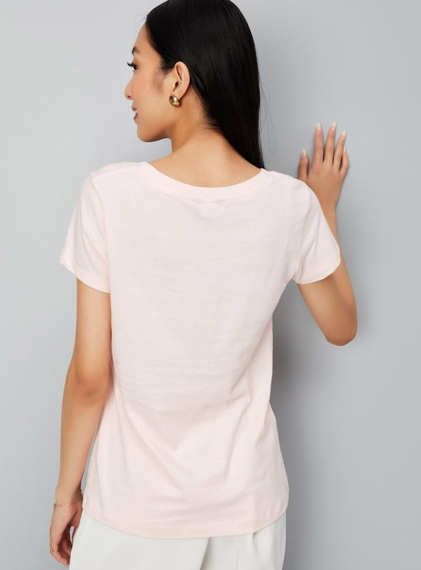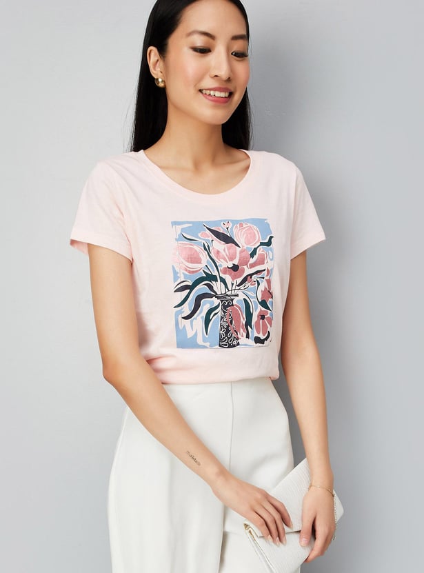 Add some style to your everyday wardrobe with this trendy t-shirt. Featuring a graphic print, it has a classic round neck and half sleeves. Pair it with jeans and sneakers to create a standout look.