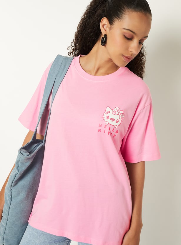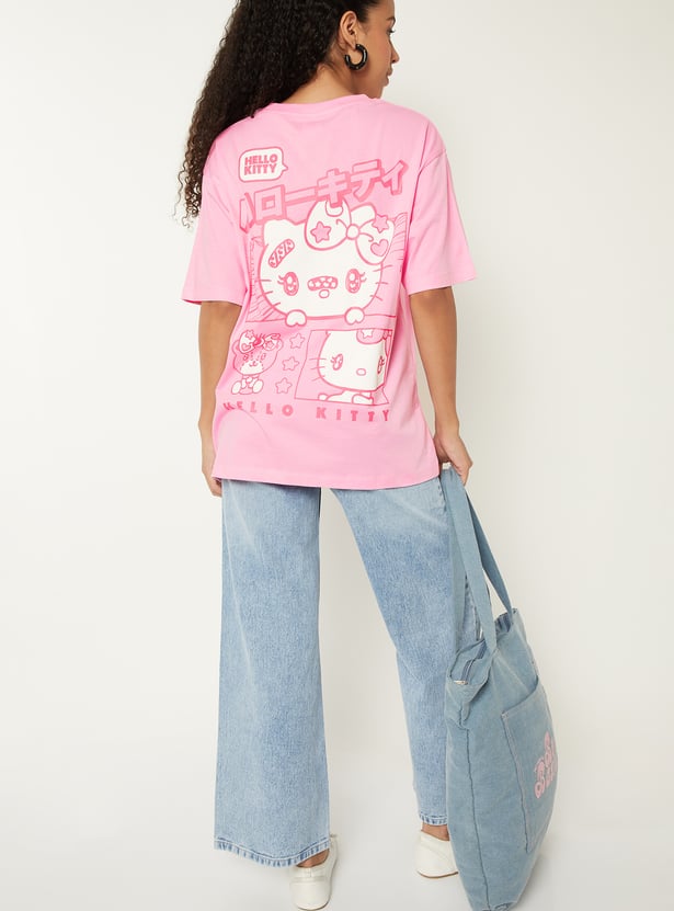 Women Hello Kitty Print Oversized T-shirt