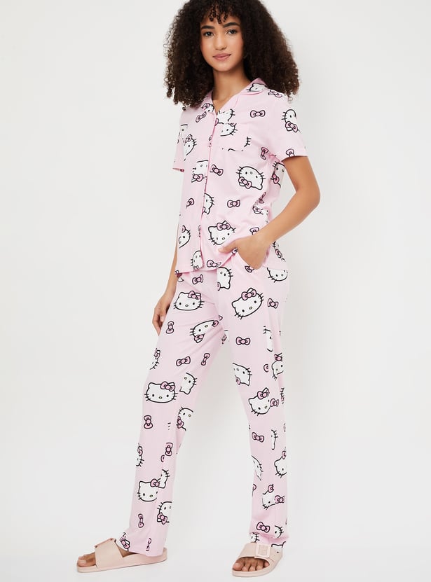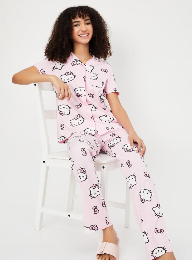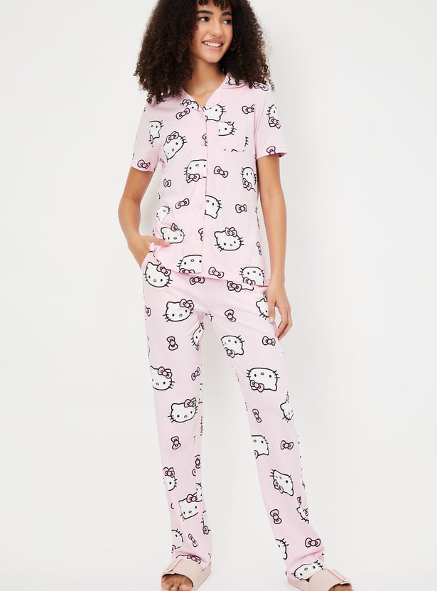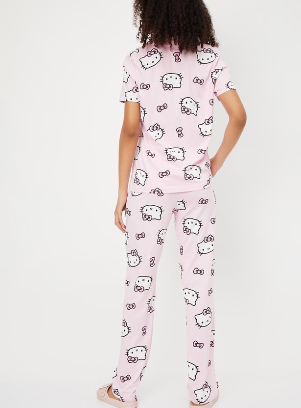 Women Hello Kitty Print PJ Set