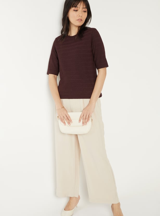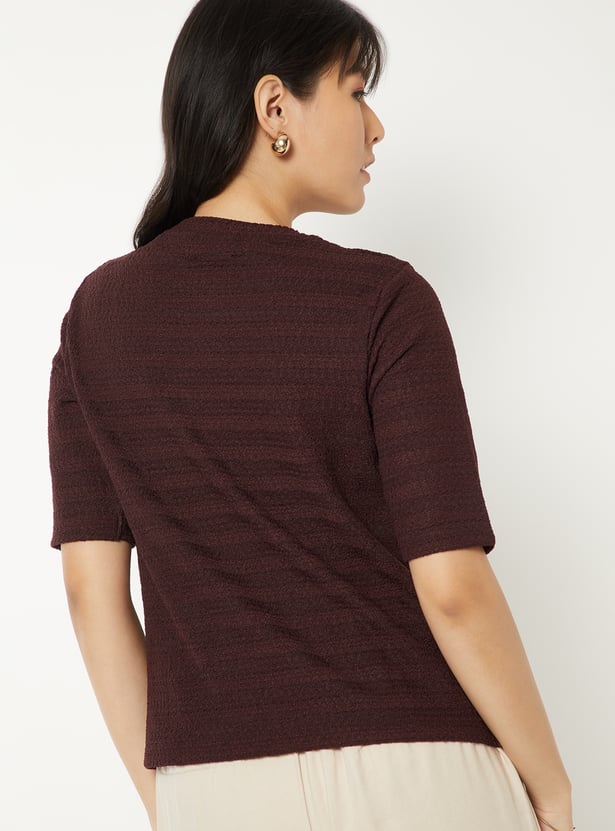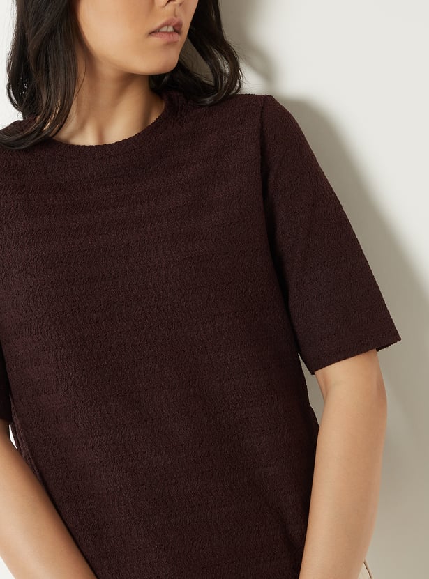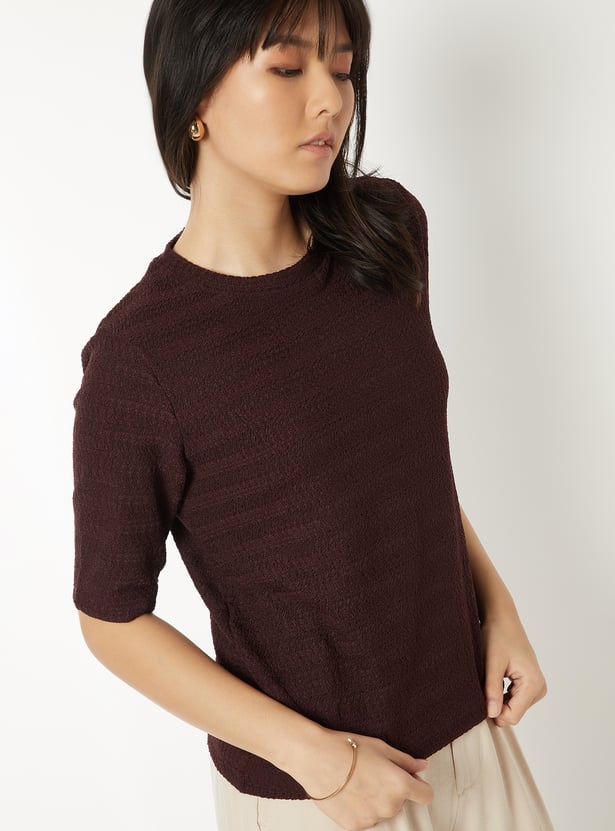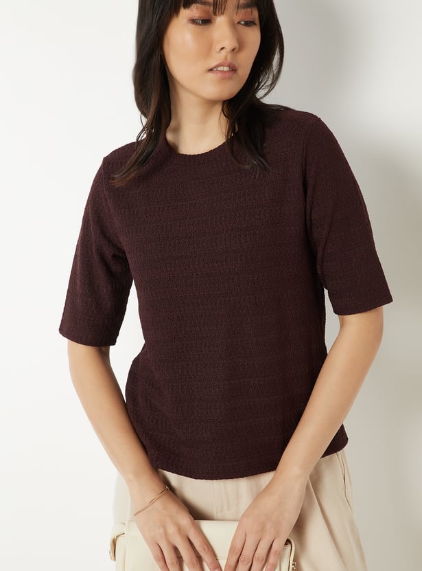 Stay casual and comfy with this knit T-shirt featuring a round neck, straight hem, and half sleeves for easy everyday wear. Model Size :