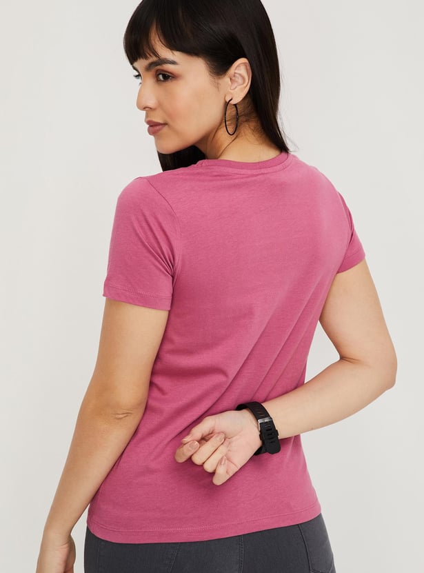 Comfortable and elegant, this printed T-shirt with a round neck and half sleeves is a perfect addition to your casual wardrobe.