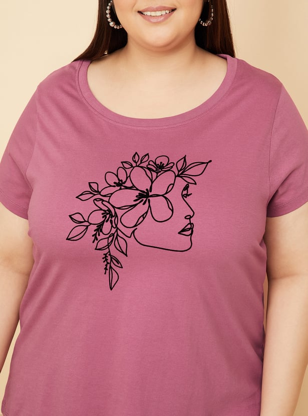 Bring a fresh vibe to your casual wear with this T-shirt. Styled with a round neck and half sleeves, it offers all-day comfort in a relaxed silhouette. The woman and floral print at the chest add a touch of charm and femininity. Model Size :