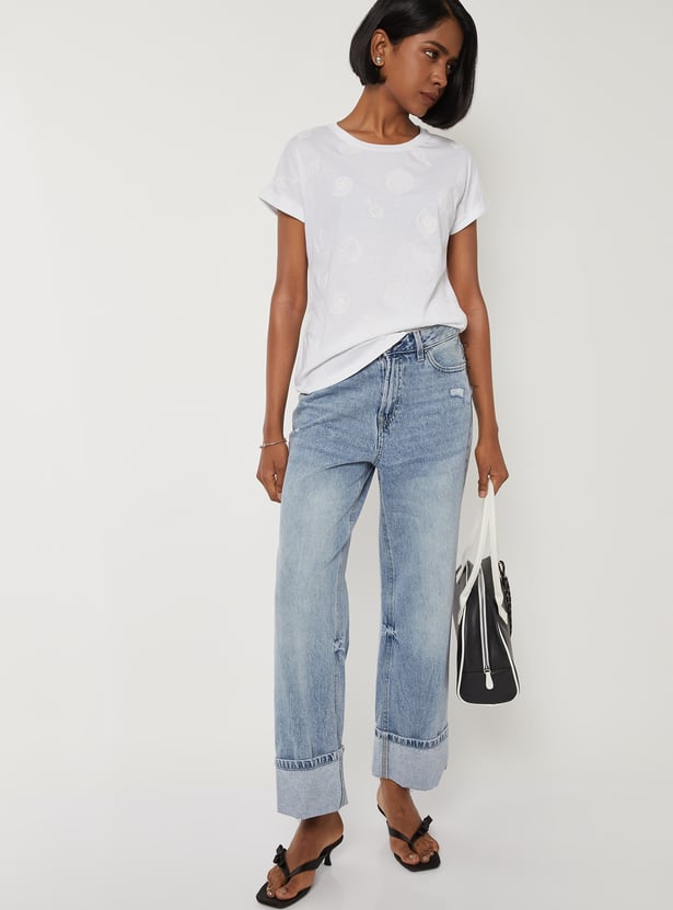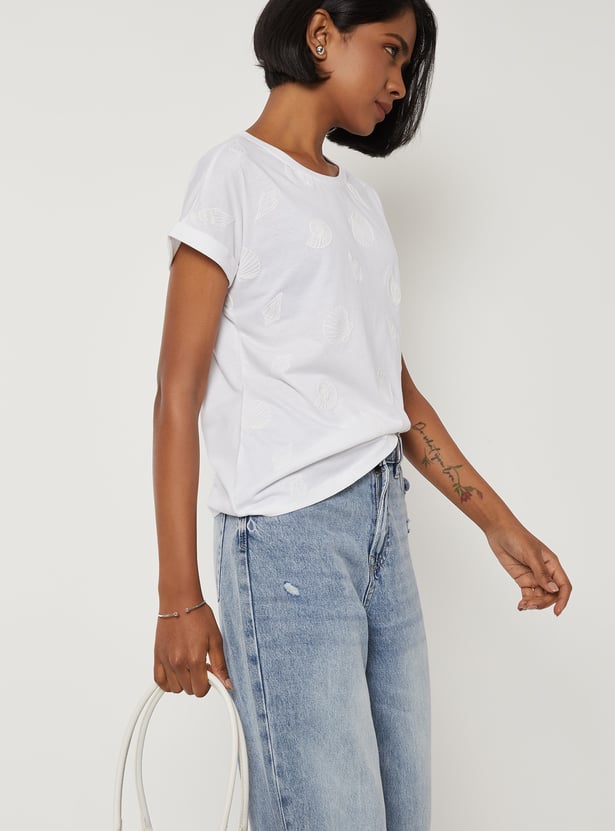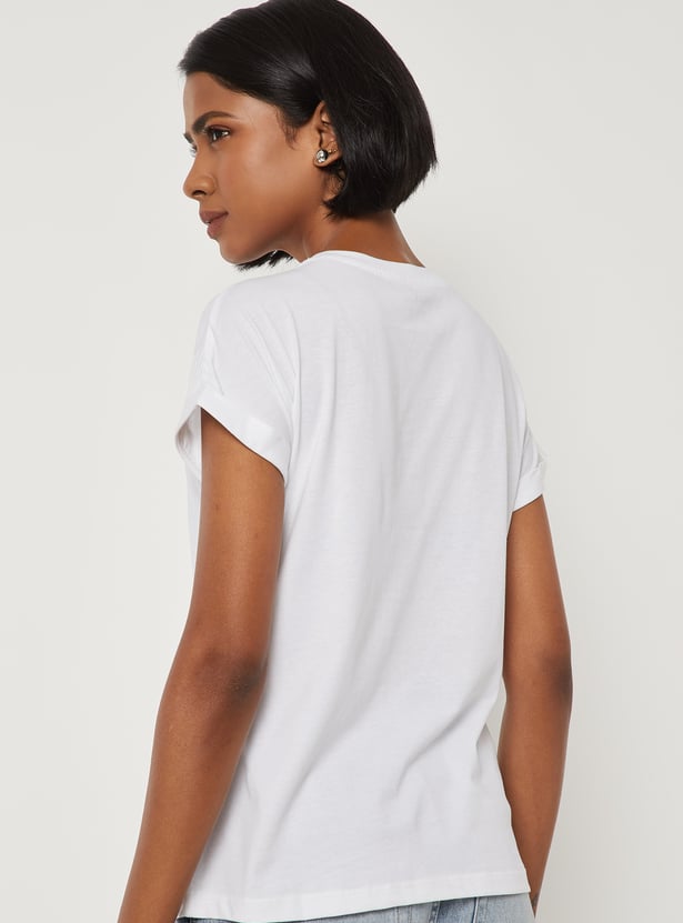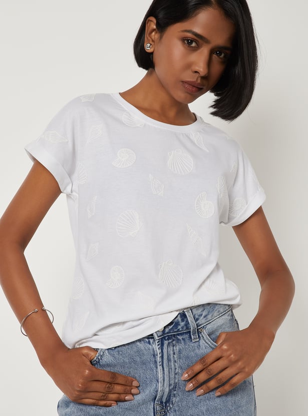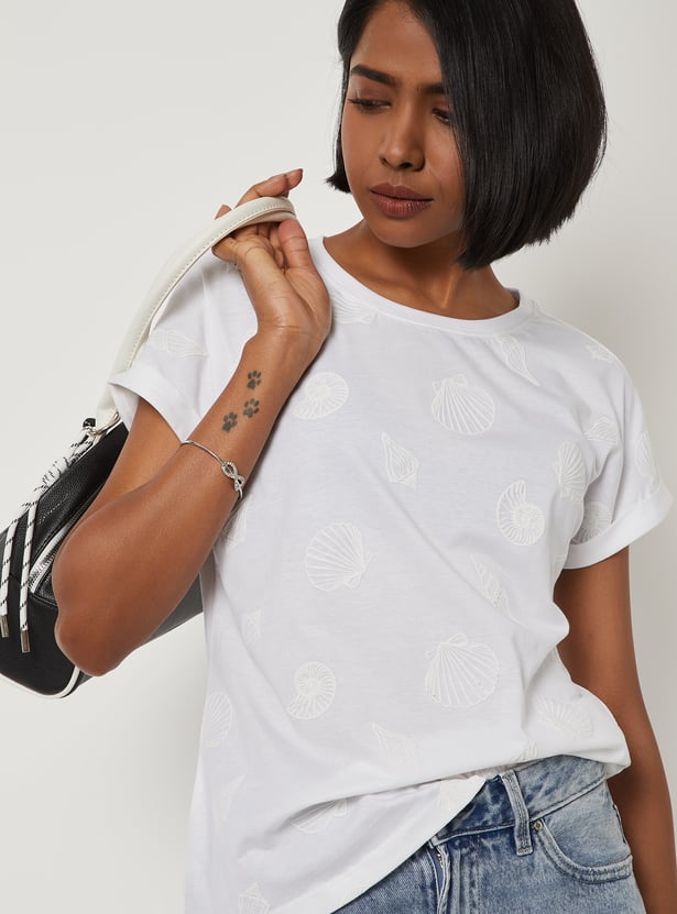 Add a casual touch to your everyday wardrobe with this printed T-shirt featuring a round neck and extended half sleeves for relaxed comfort. Model Size :