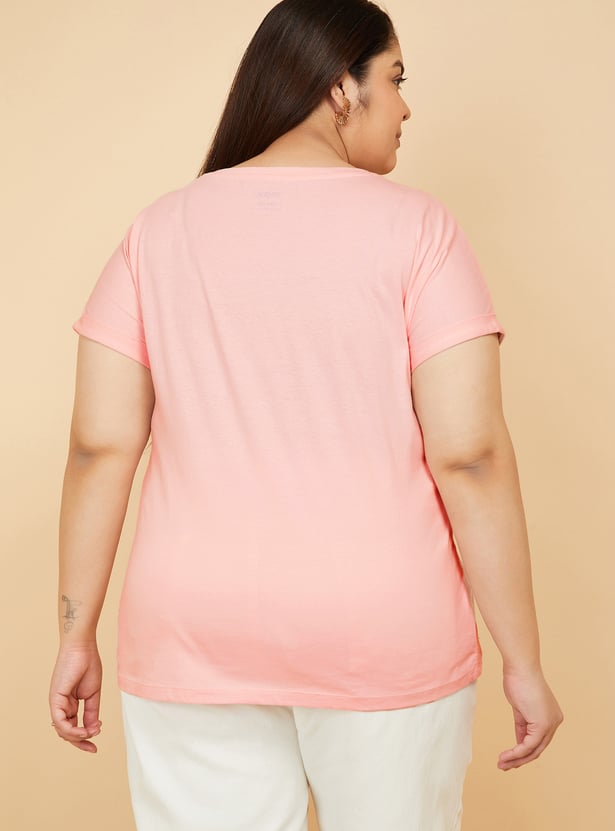 Add a casual touch to your everyday wardrobe with this printed T-shirt featuring a round neck and extended half sleeves for relaxed comfort. Model Size :