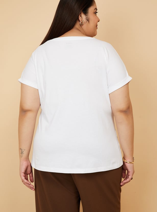 Add a casual touch to your everyday wardrobe with this printed T-shirt featuring a round neck and extended half sleeves for relaxed comfort. Model Size :