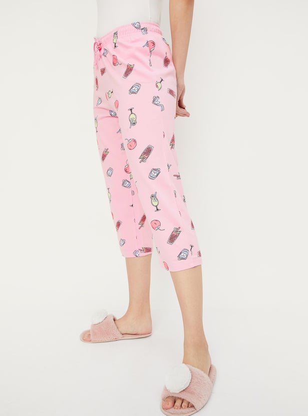 Indulge in a restful night's sleep with these comfortable capris, refreshed with quirky prints. Featuring a drawstring waist and convenient side pockets, they combine style with functionality for ultimate relaxation.