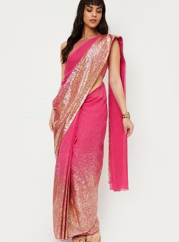 Women Sequinned Pre-Stitched Saree and Blouse Set