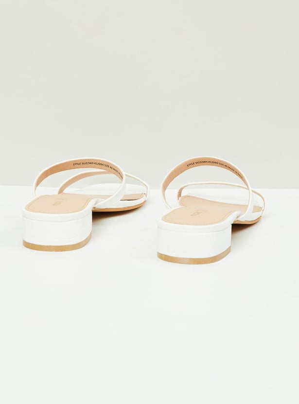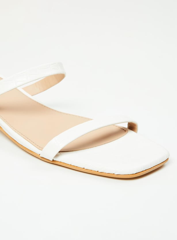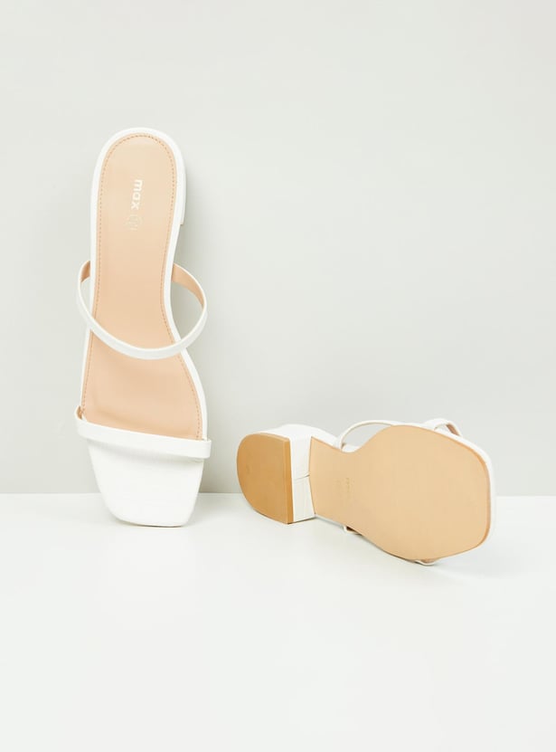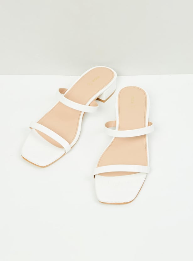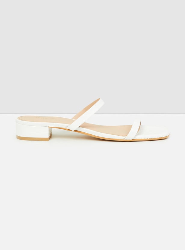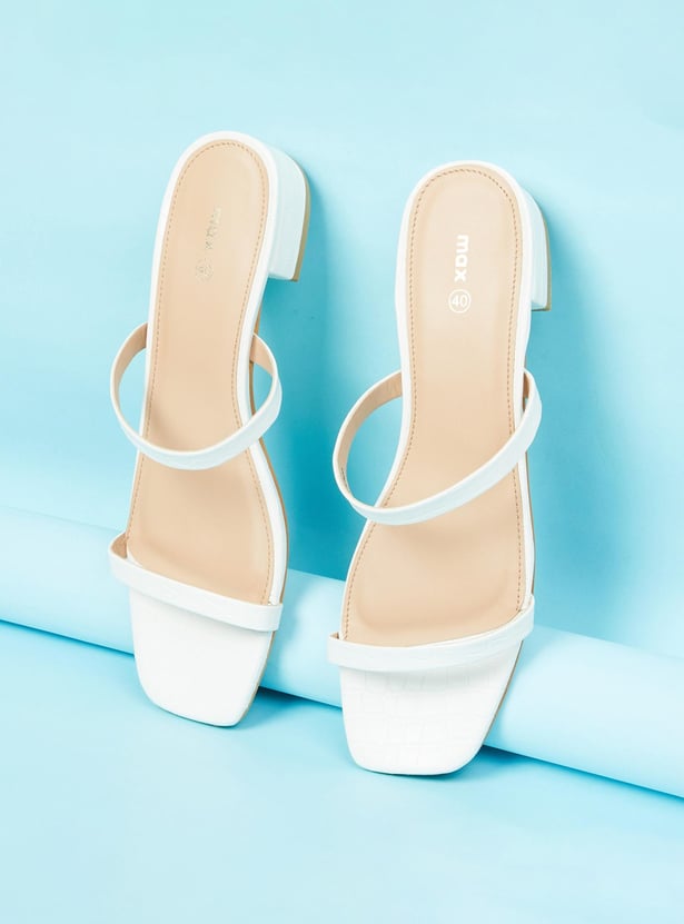 Detailed with a solid surface and slip-on fastening, this pair of sandals is a chic upgrade for your footwear collection. The pair has a block heel detail and two-strap construction for added convenience.