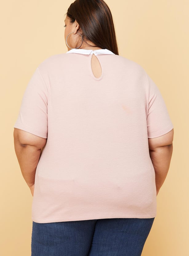 Bring a preppy touch to your outfit with this top featuring a contrast collared neckline and short sleeves. Team up this top with jeans, stilettos and a clutch for a fashion-forward look.