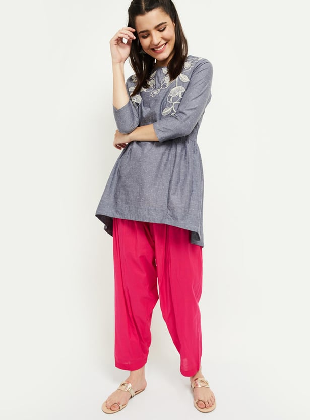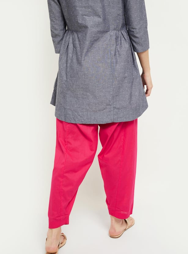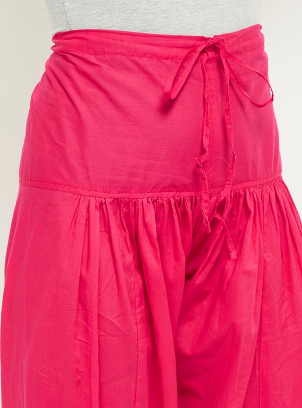 Designed into a solid surface with a drawstring waist, this pair of salwar is an ideal pick to give yourself a coordinated and stylish look.