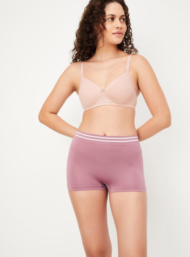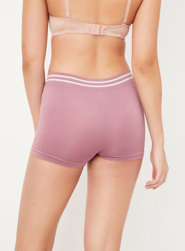 Comfort takes precedence in this pair of boy shorts. The striped pattern at the waist elevates the look.