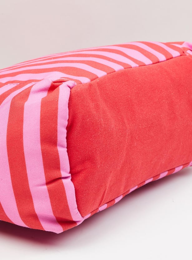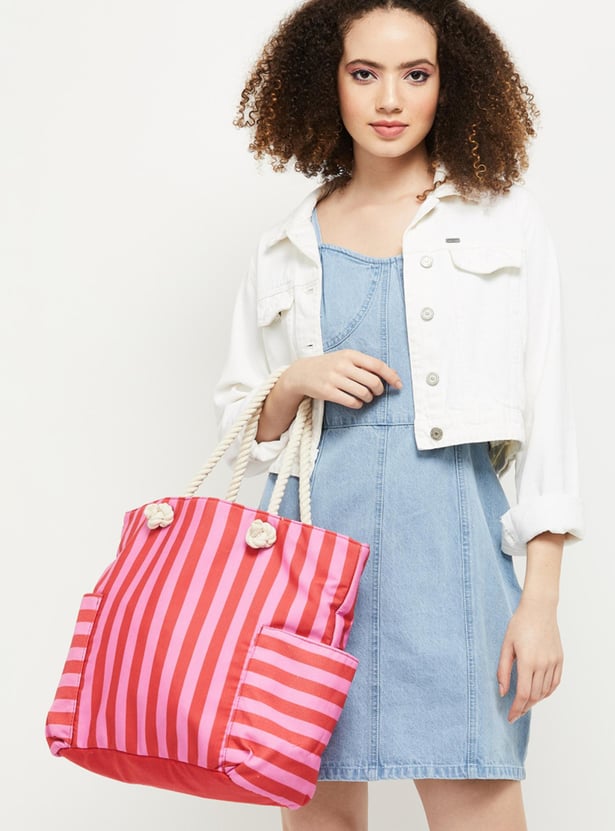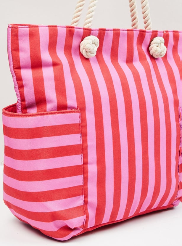 Women Striped Zip Closure Tote Bag