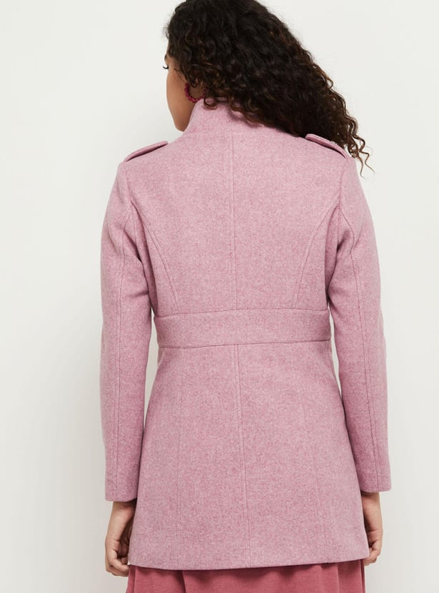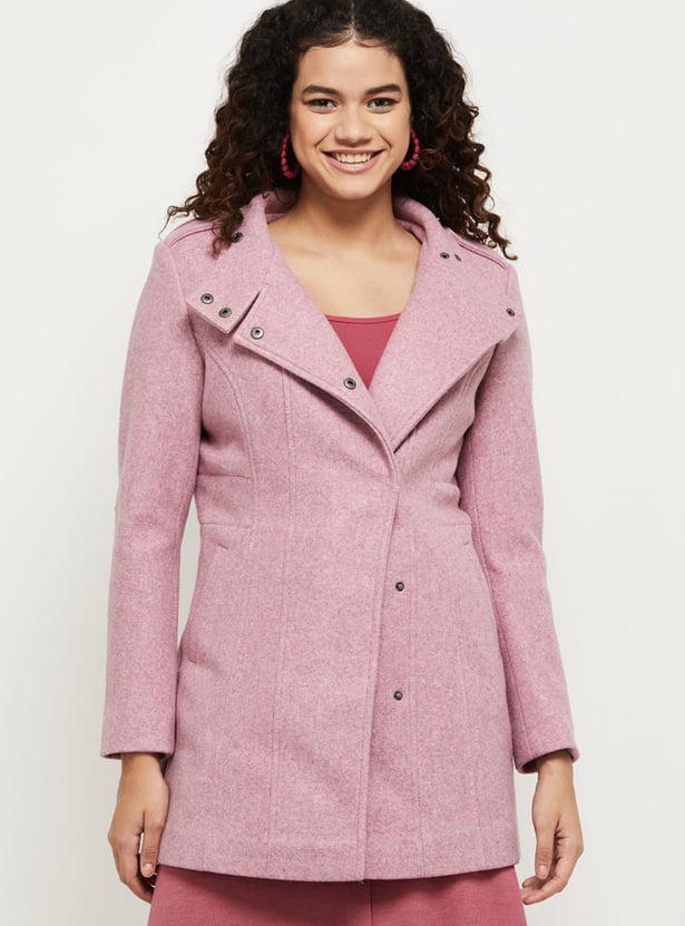 This casual winter jacket is designed with a textured surface, full sleeves, pockets, button closure, and a high neckline to emphasize the entire look.