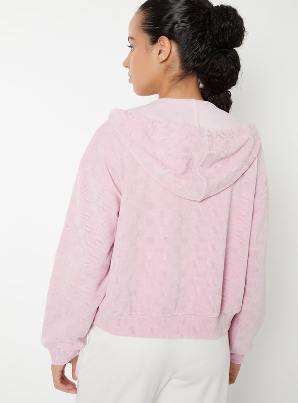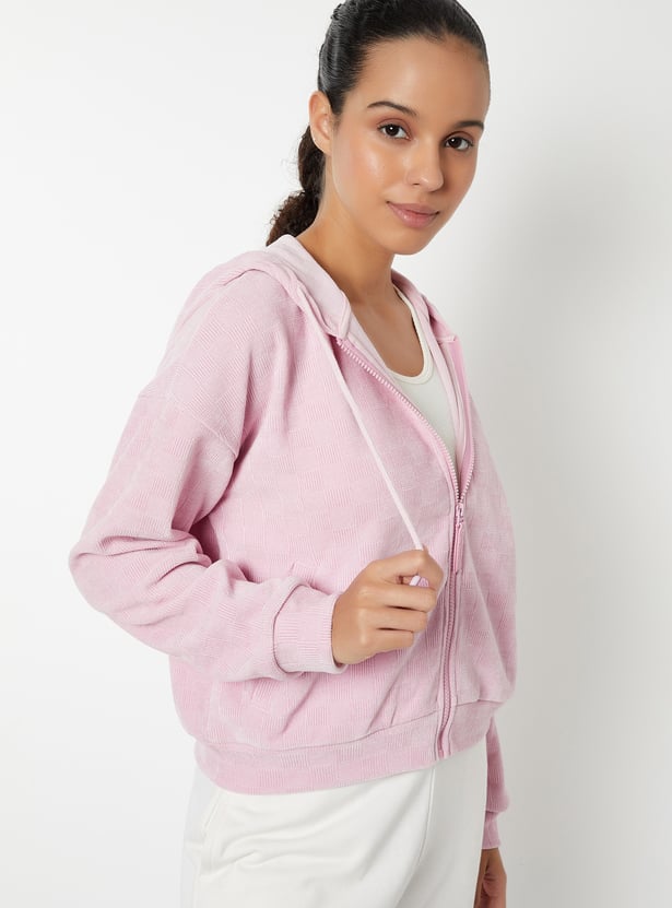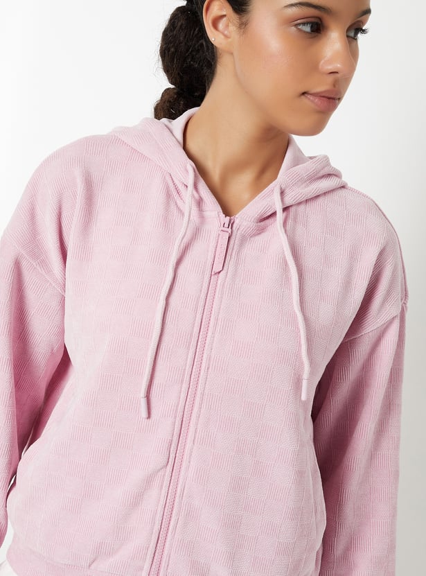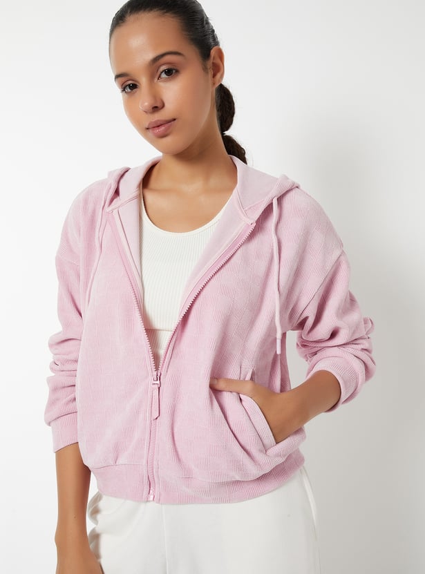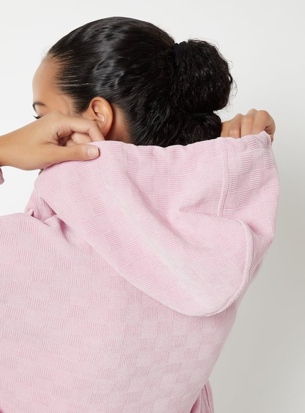 Stay snug and stylish with this textured hooded jacket, featuring a zip closure, full sleeves, and side pockets for added convenience. The hooded neck adds extra warmth, making it perfect for cooler days. Model Size :