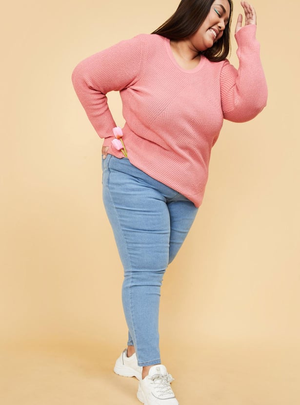 Cosy up your style with this sweater featuring a textured knit pattern, round neckline, long sleeves, and ribbed trim. Team up this sweater with boot-cut jeans and sneakers to slay your winter look.