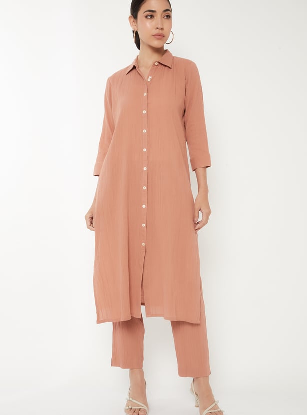 Women Textured Straight Kurta Set