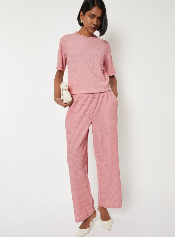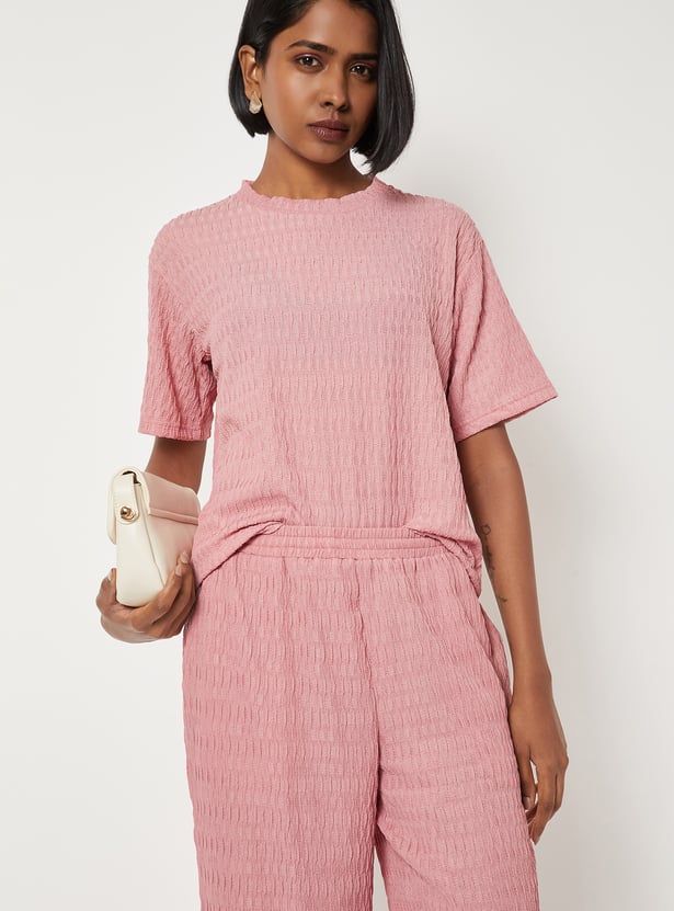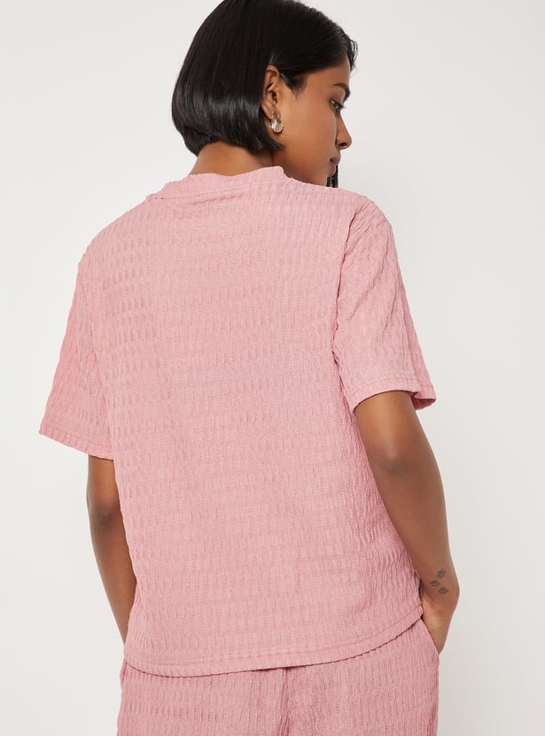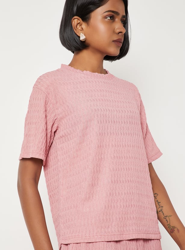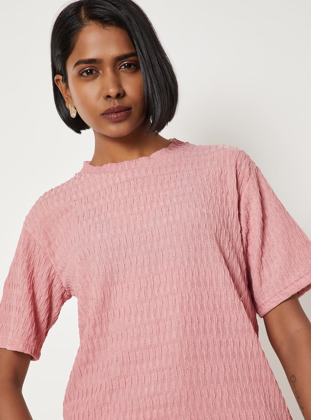Keep your everyday look effortlessly chic with this top. Featuring a round neck and half sleeves, it offers a comfortable, relaxed fit. The textured woven design adds subtle depth and style.