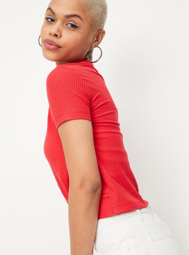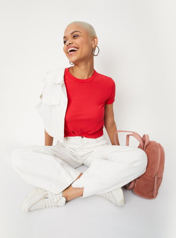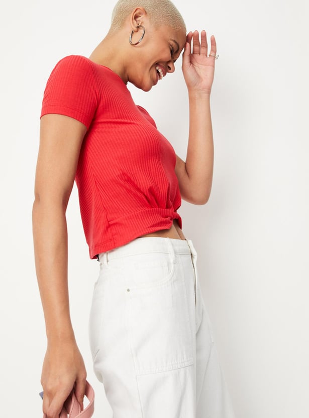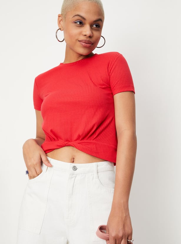 Women Textured Twisted Hem T-shirt