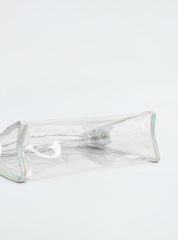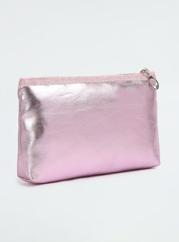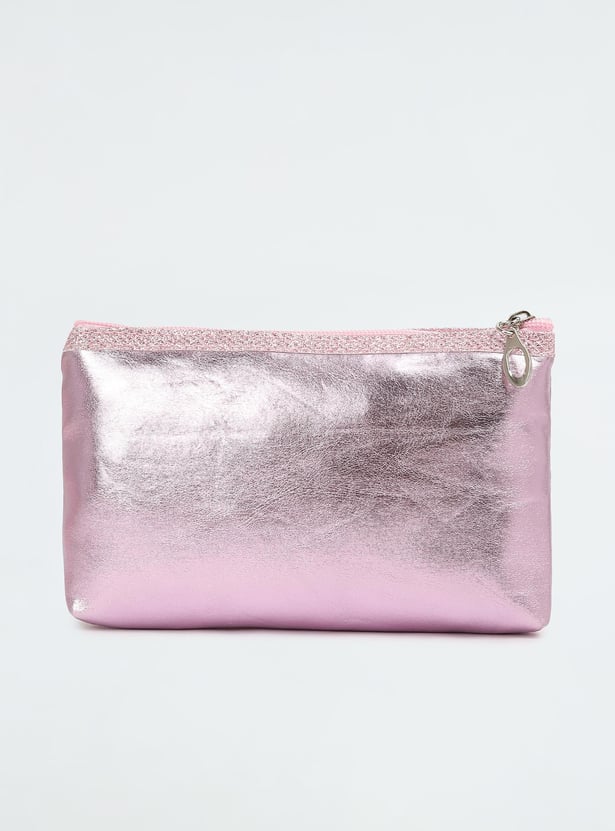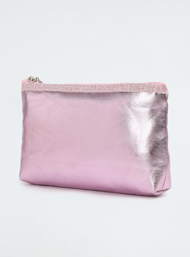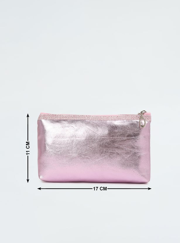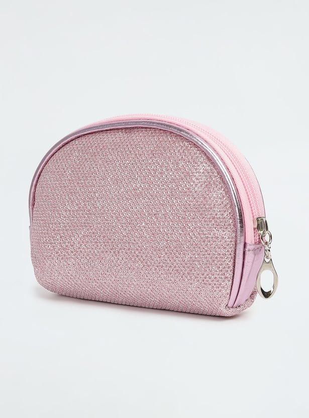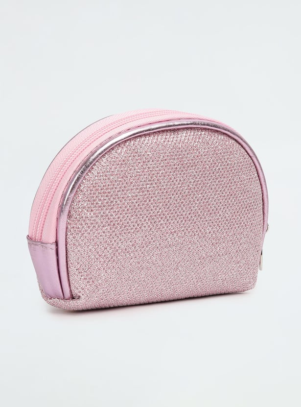This set of 3 textured vanity pouches combines functionality with elegance, offering a versatile solution for organizing your essentials. The set has one transparent pouch, one solid pouch, and one textured pouch in three different sizes with a zip closure. The pouches feature a chic textured exterior, adding a touch of sophistication, while the varying sizes cater to different needs, from storing makeup to organizing travel essentials.