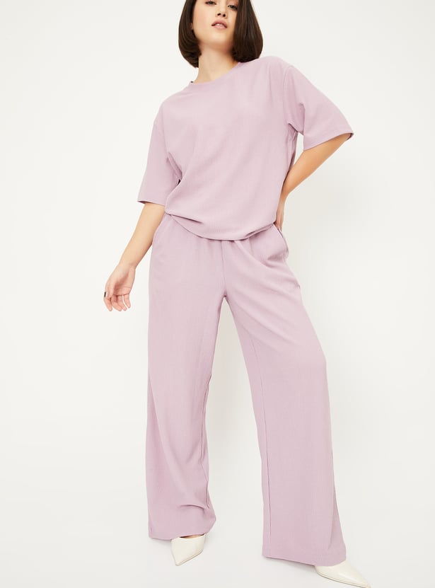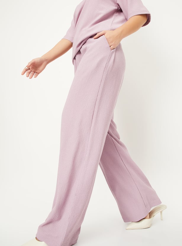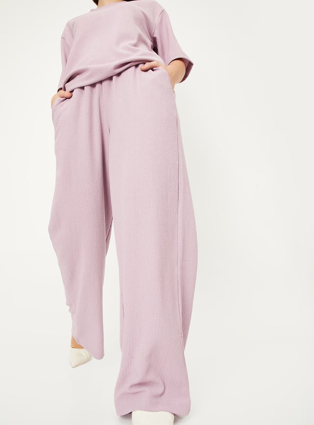 These textured wide-leg trousers are a perfect blend of comfort and style. With an elasticated waist for a relaxed fit and side pockets for convenience, they’re ideal for casual outings.
