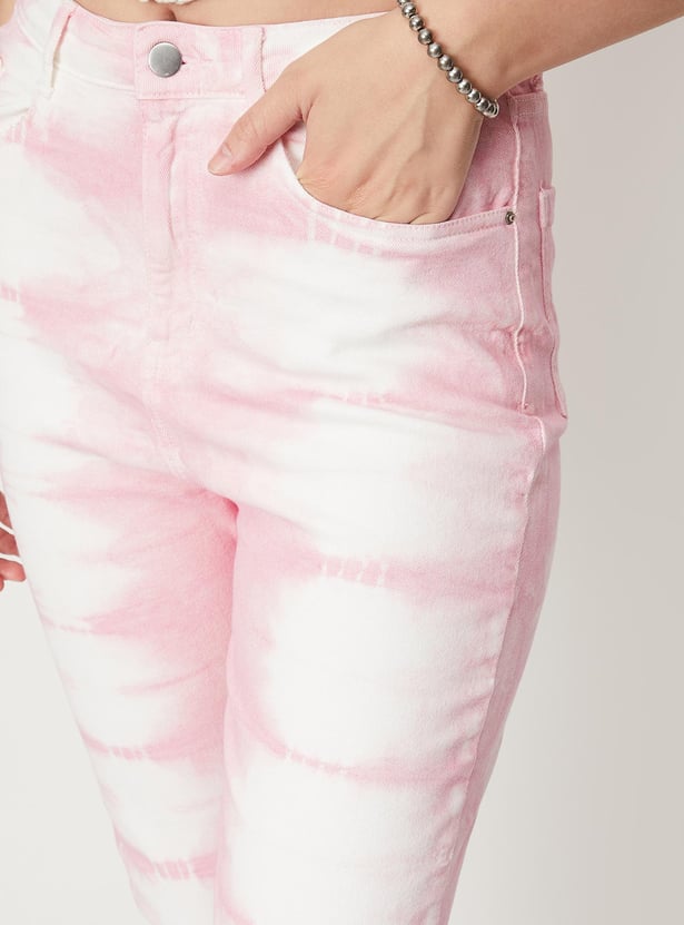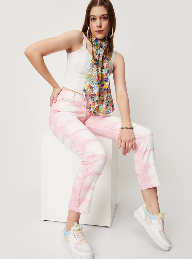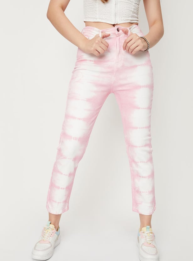 Women Tie and Dye Printed Mom Fit Jeans