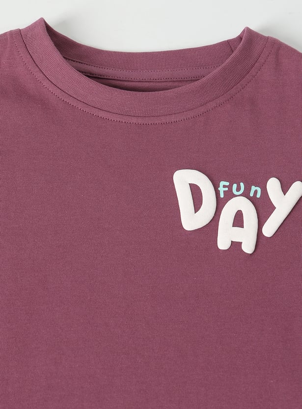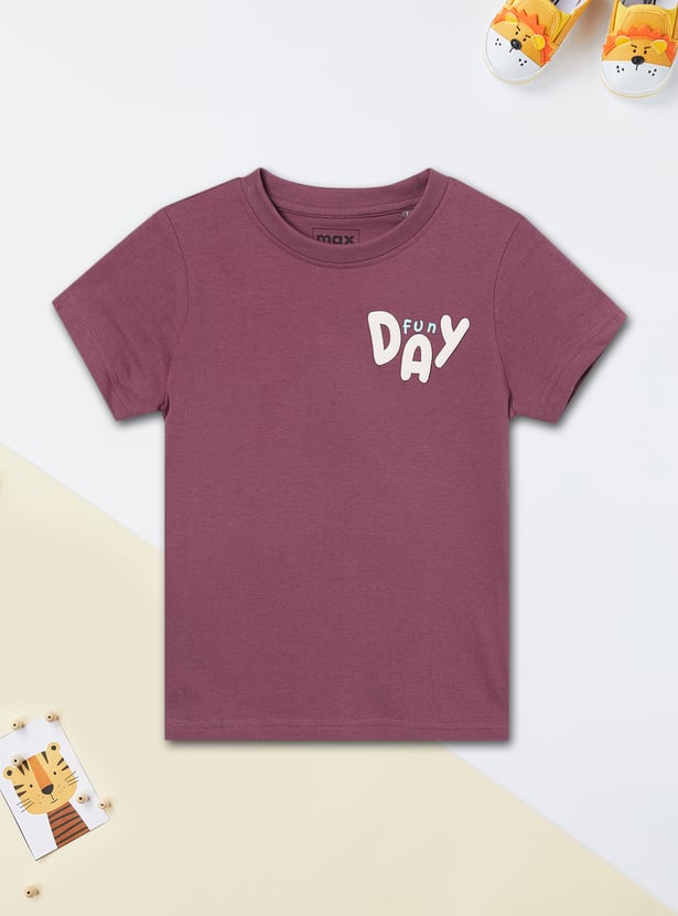 Keep it casual and comfortable with this applique t-shirt, featuring a classic crew neck and half sleeves. The soft fabric and stylish print make it a perfect pick for everyday wear.