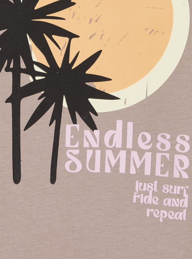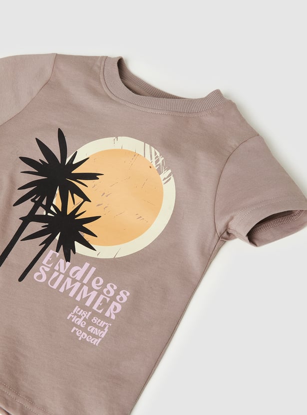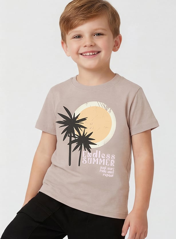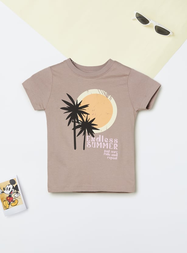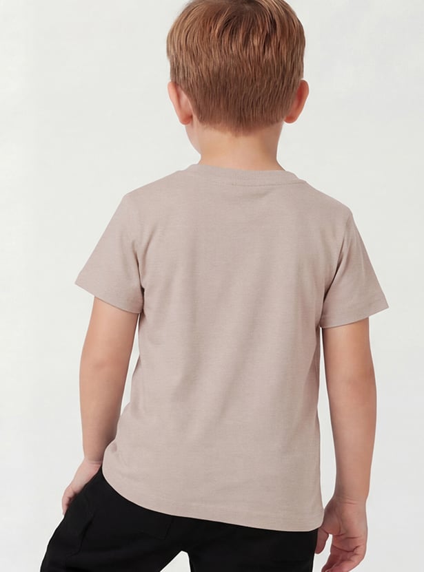 Add a cool graphic touch to his everyday wardrobe with this T-shirt. Designed with a crew neck and half sleeves for all-day comfort, it features a bold graphic print on the front.