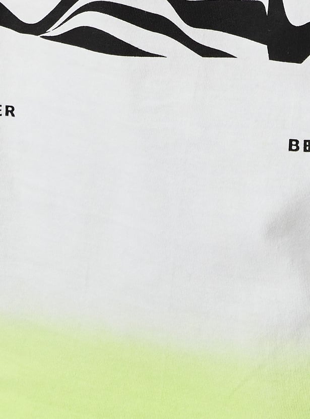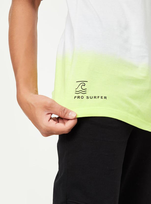 Add a fun twist to your kid's casual wardrobe with this T-shirt. It is styled with a back graphic print, a placement print on the chest, a crew neck, and half sleeves.