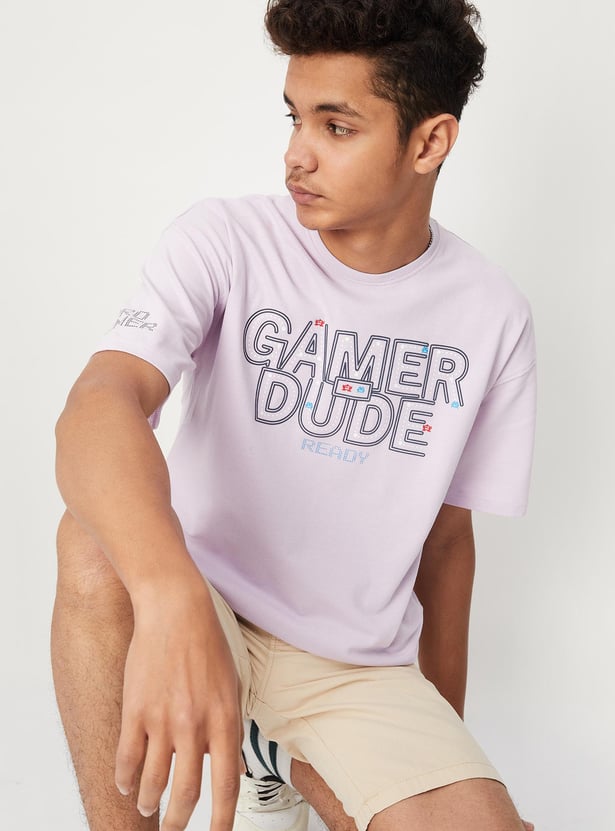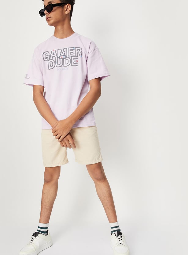 A new day calls for a new trend and your child is ought to slay every day with this oversized t-shirt. It is designed with a typographic HD print on the surface, crew neckline, and half sleeves. Team it with a pair of shorts and lace-up shoes to complete the look.