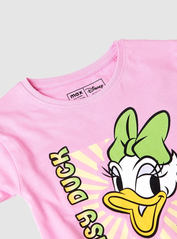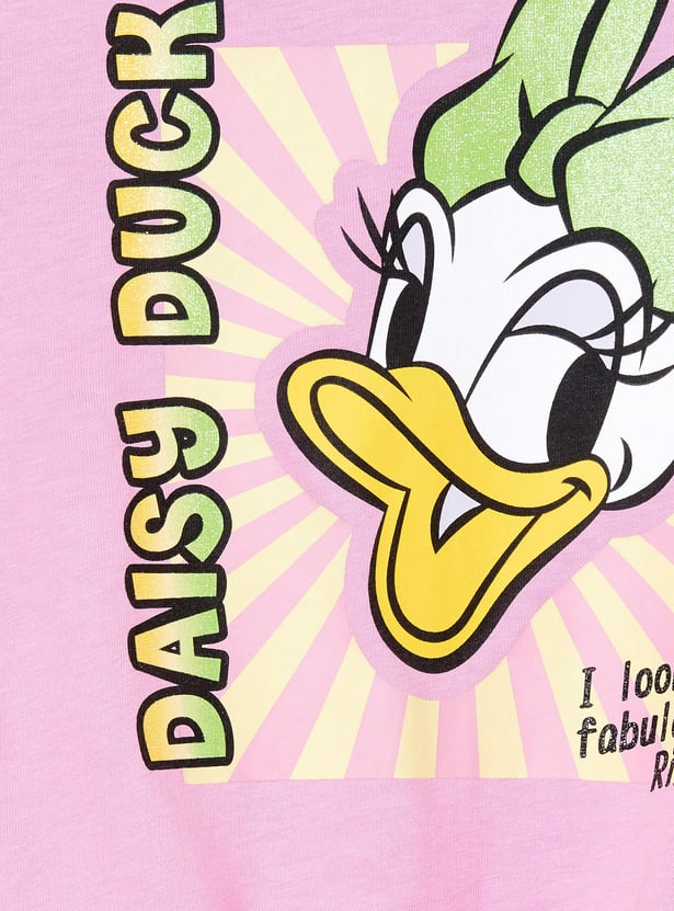 Girls Daisy Duck Print T-shirt with Knotted Hem
