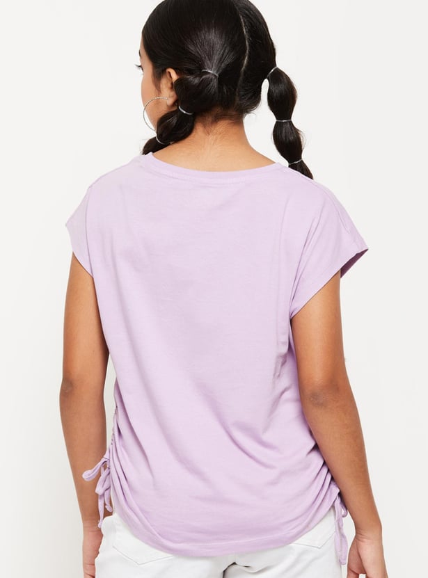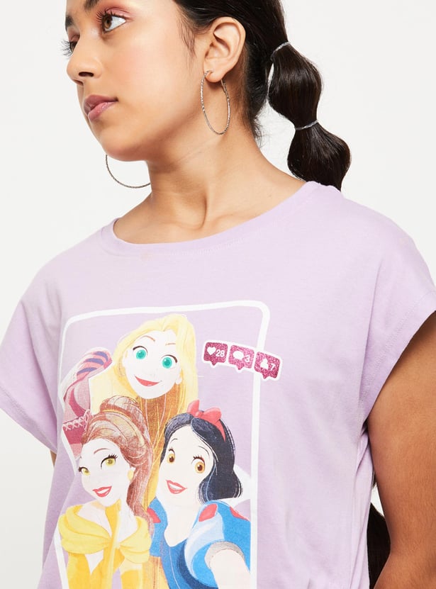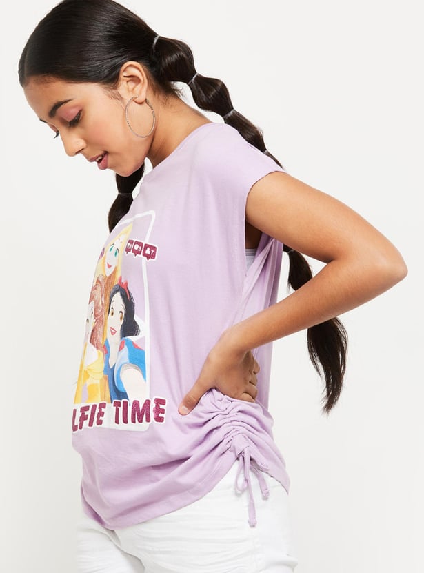 Comfortable and trendy, this Disney Princess printed top with a round neckline and half sleeves is all you need to update your child's casual collection.