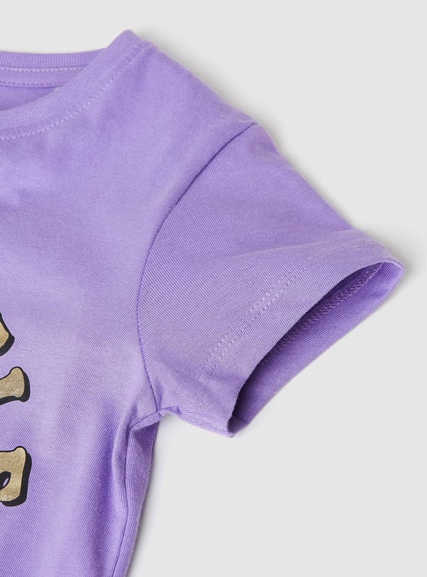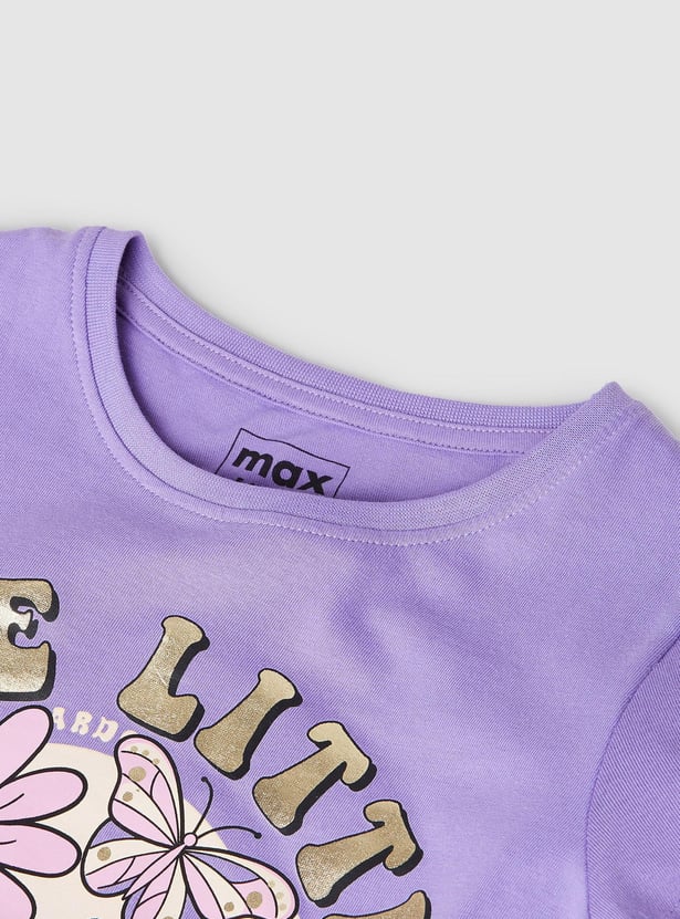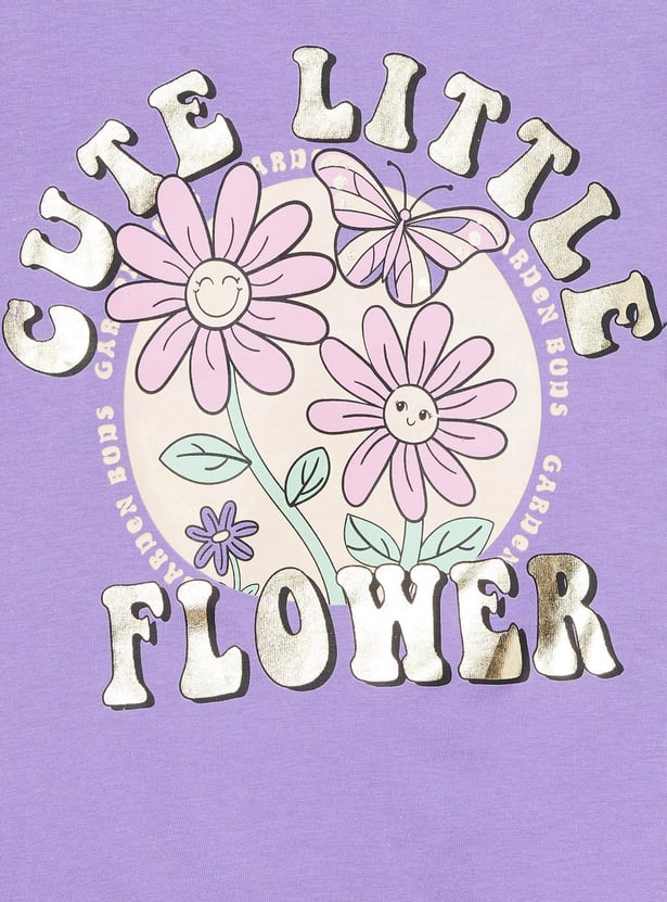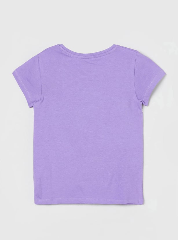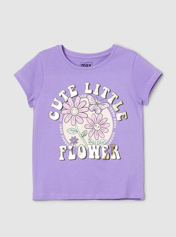 A perfect addition to her everyday rotation, this T-shirt is highlighted with a cute metallic print at the chest. It is designed with a round neck and short sleeves.