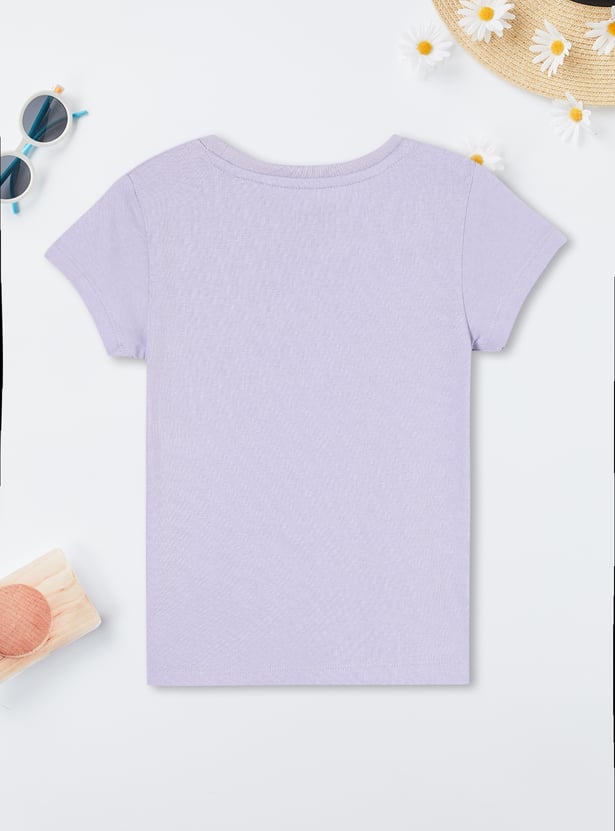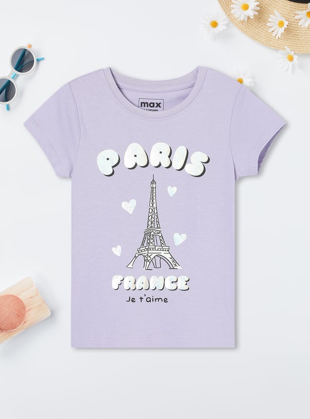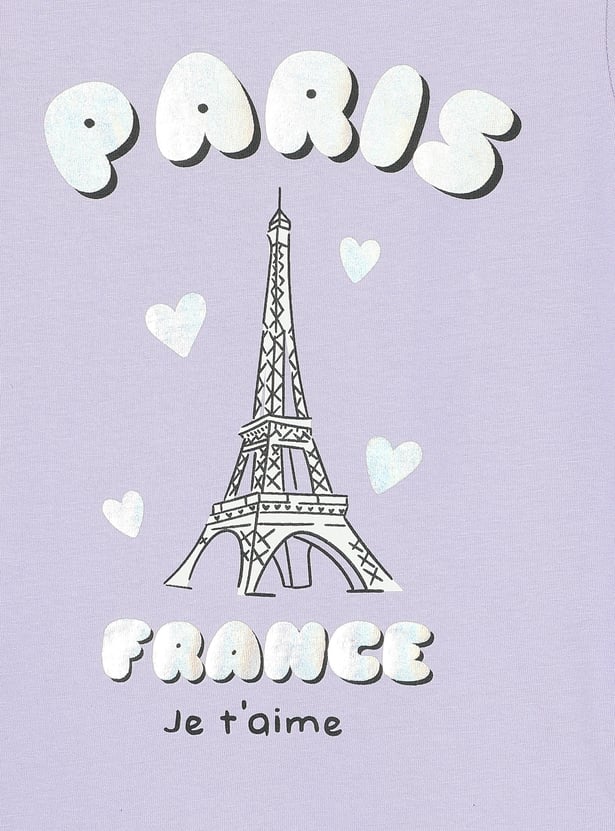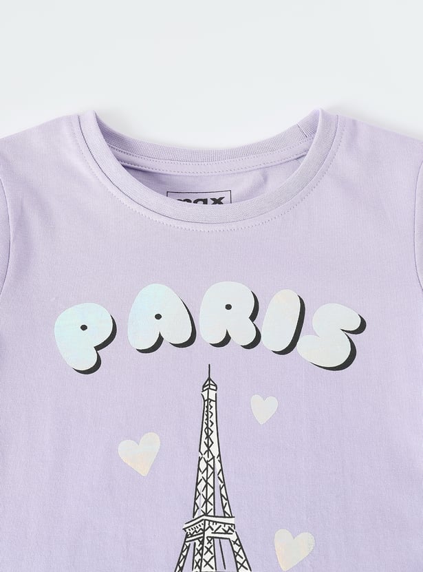 This playful T-shirt is sure to spark a smile on your little one! Featuring a classic round neck, a cute metallic graphic print, and half sleeves, it’s perfect for adding a touch of fun to their everyday wardrobe.